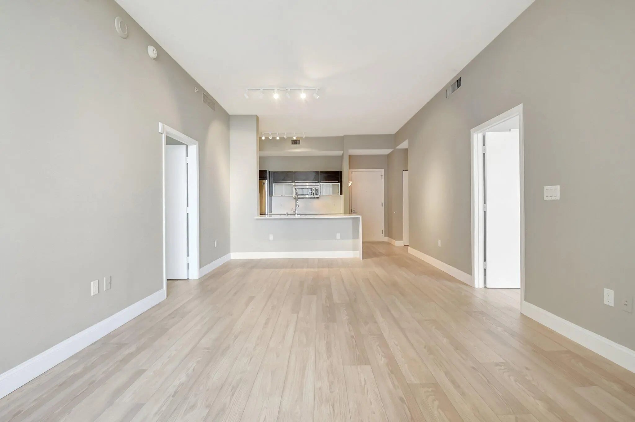 Rarely available, renovated penthouse rental with southeast exposure and coastal views in the heart of Downtown West Palm Beach. Soaring 10-foot ceilings and floor-to-ceiling impact glass fill the space with natural light and showcase views over the resort-style pool with glimpses of the Ocean and Intracoastal.This thoughtfully updated residence features white quartz waterfall countertops with matching backsplash, built-in breakfast bar seating, all-new LVP flooring, and fresh paint throughout. The open-concept living and dining areas are ideal for everyday living or entertaining. The fully equipped kitchen offers top-tier appliances and generous counter space.