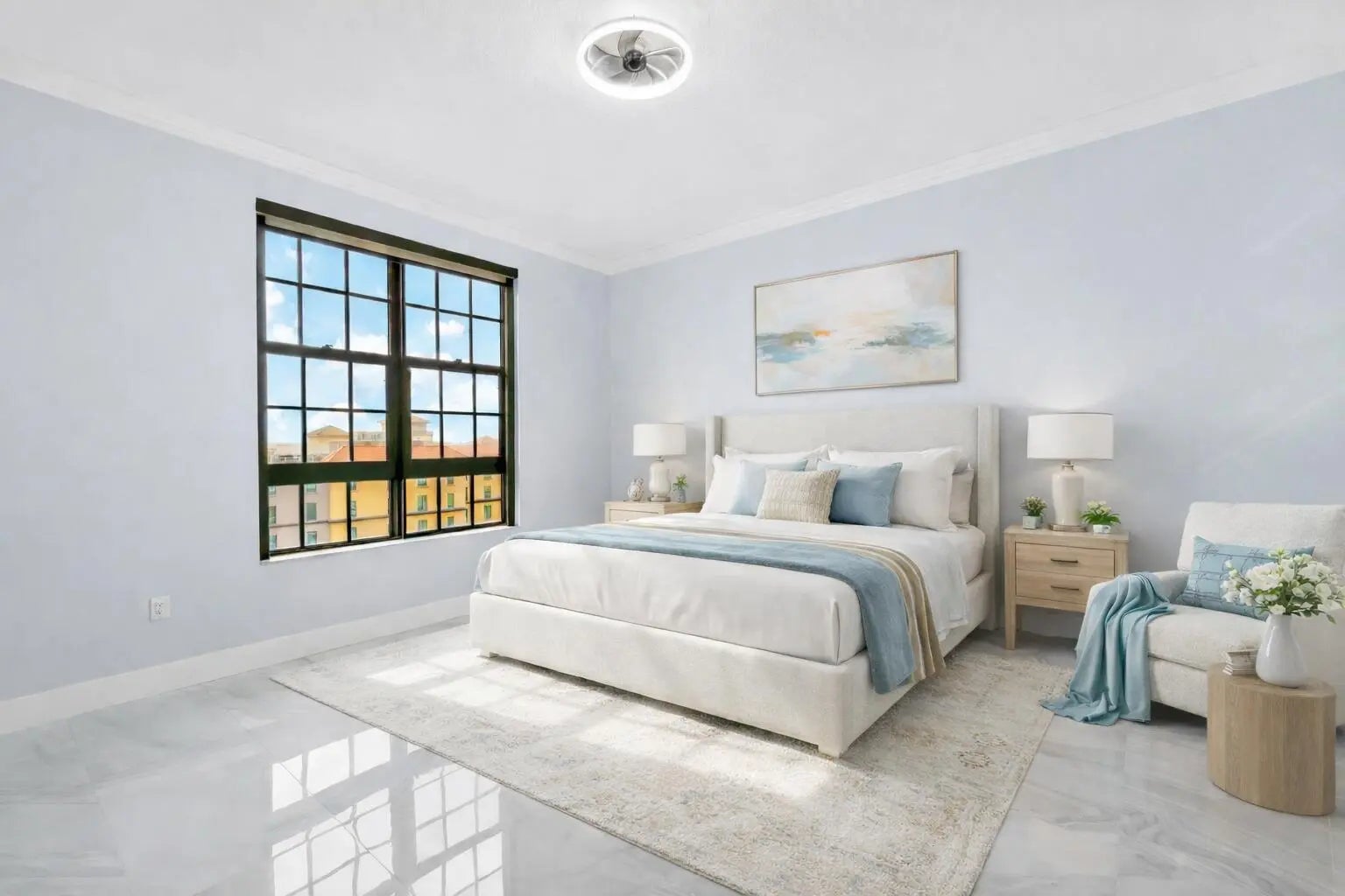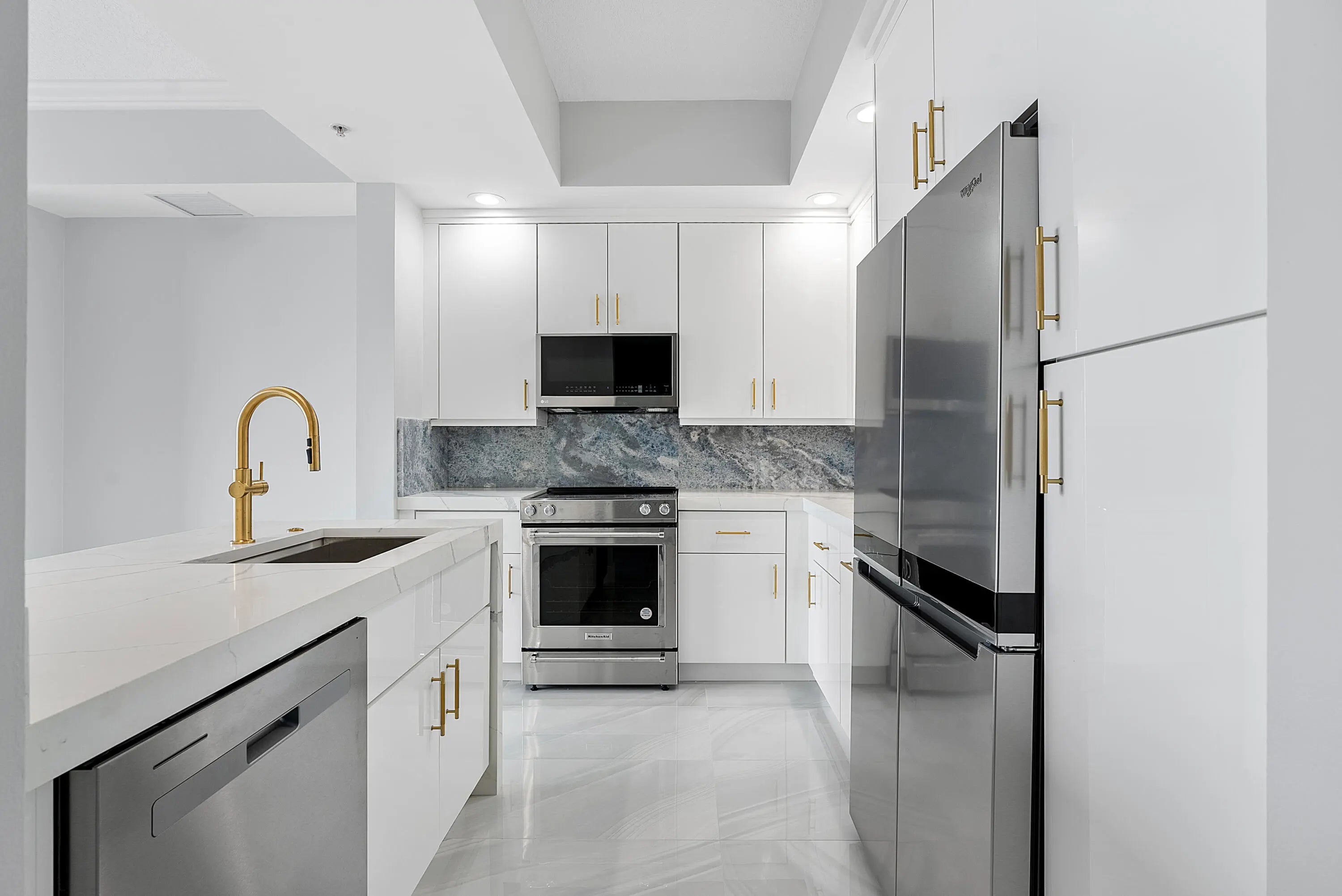 Welcome to a truly exceptional residence that will take your breath away from the moment you step inside. This magnificent home in the sky offers panoramic southeast views of the intracoastal and ocean while also boasting a stunning city sunset skyline. All framed with soaring 10' ceilings and floor to ceiling sliders to seamlessly connect the living and dining /kitchen spaces with the awe-inspiring surroundings. Featuring 2-bedroom, 2 fully renovated bathrooms plus den/ flex 3rd room. The newly remodeled kitchen is stunning, highlighting custom cabinetry, counters, backsplash and all new appliances. The flexibility of this residence is evident with a bonus 3rd room that can serve as a den, sitting/TV, or a third flex room. The spacious master suite is a sanctuary in itself, featuring..