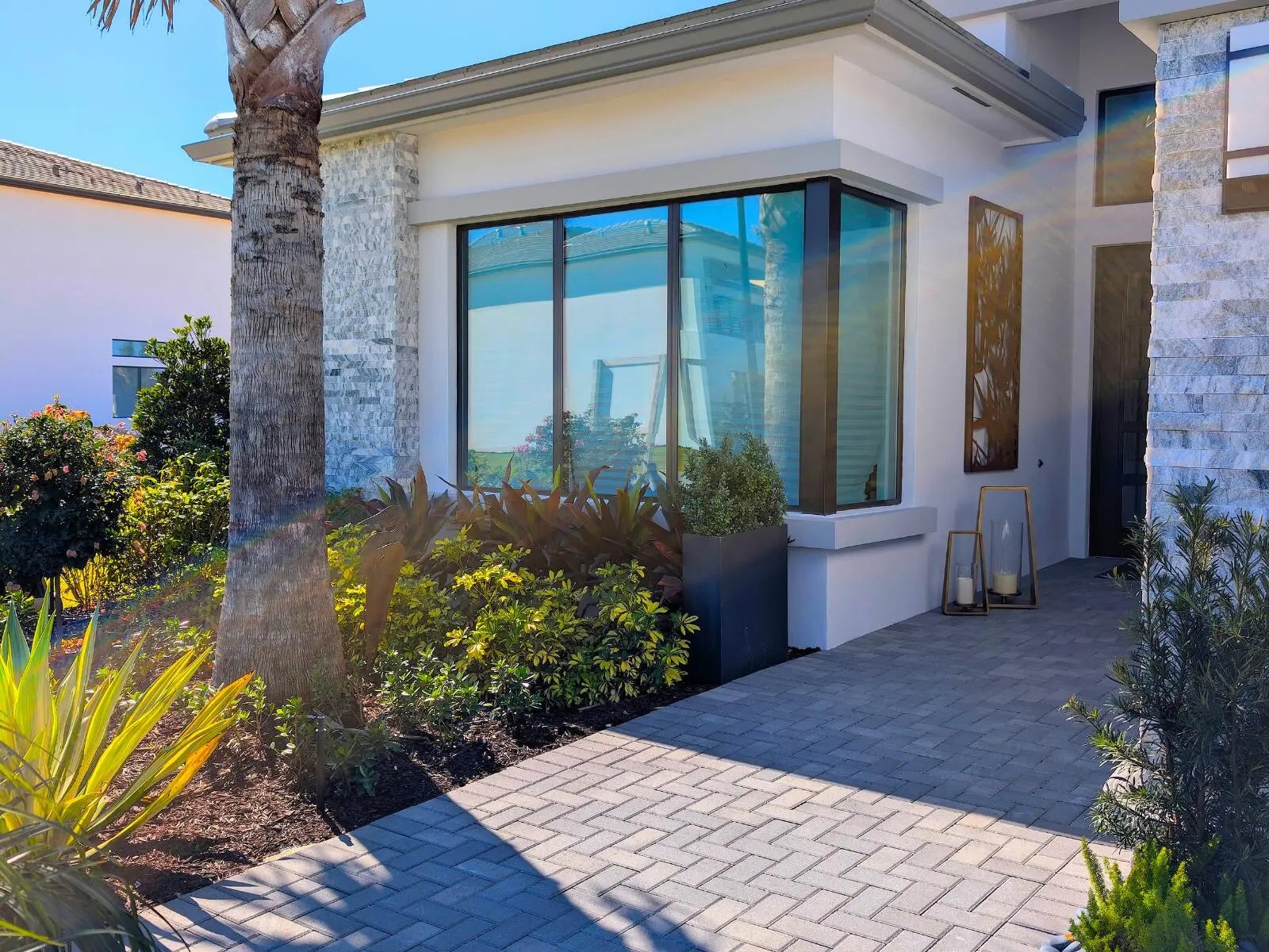 STUNNING MODERN-CONTEMPORARY SANCTUARY. Be the first to inhabit this sun-drenched, brand-new masterpiece in Lotus Edge, Boca Raton. Completed in Dec 2025, this one-story ''Santo Grand'' model has never been lived in. Boasting soaring high ceilings and floor-to-ceiling windows, the home features a breathtaking custom-built entertainment wall, designer lighting, and high-end contemporary furnishings throughout. Every detail is a statement of luxury: from the LED-lit custom closets in every room to the pristine epoxy garage floors. Situated on a premium lakefront lot with a massive backyard, the property includes a fully approved luxury pool project ready to commence shortly.