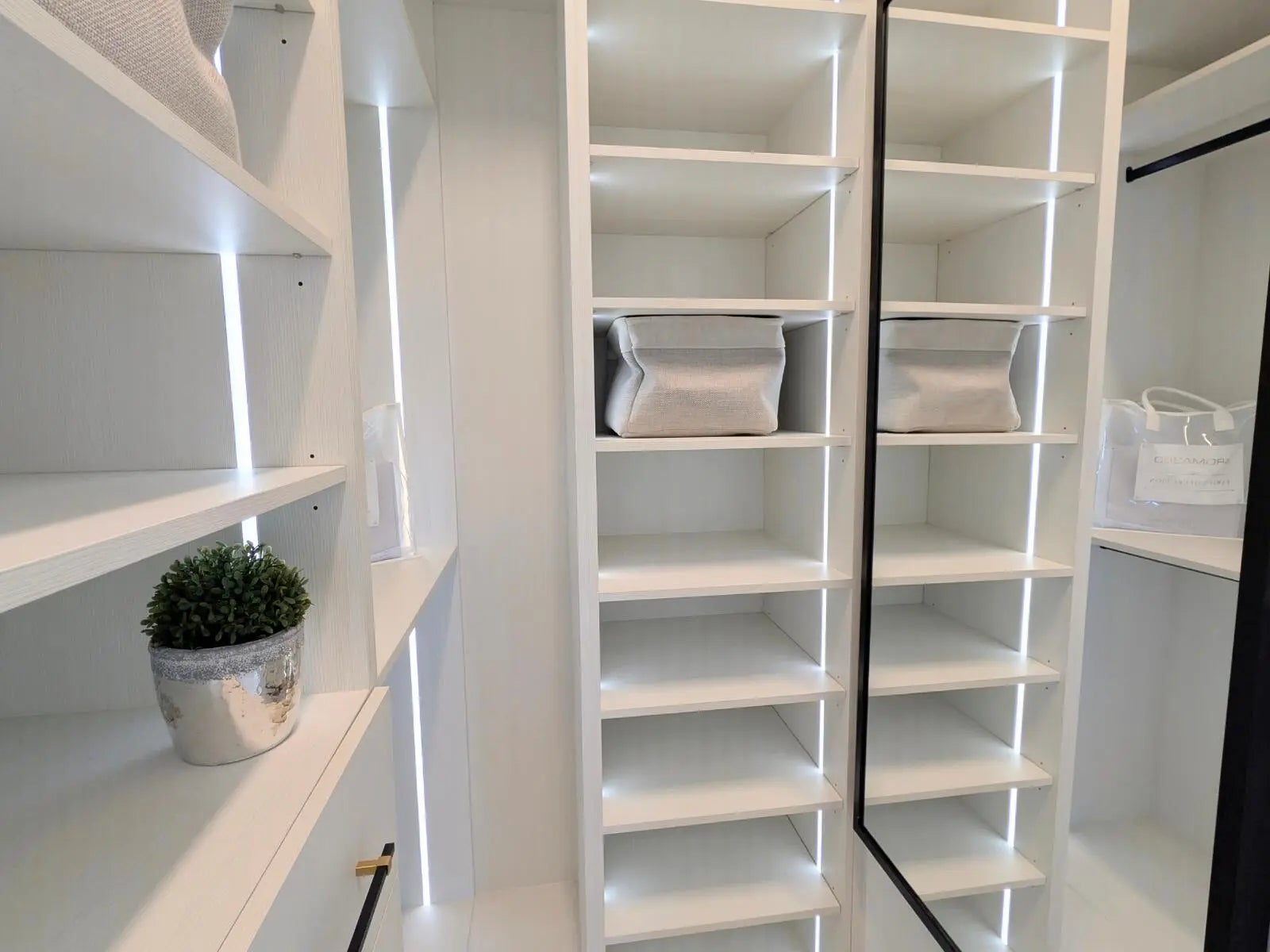 Closet Cabinets, Custom Mirror, Walk-in Closet