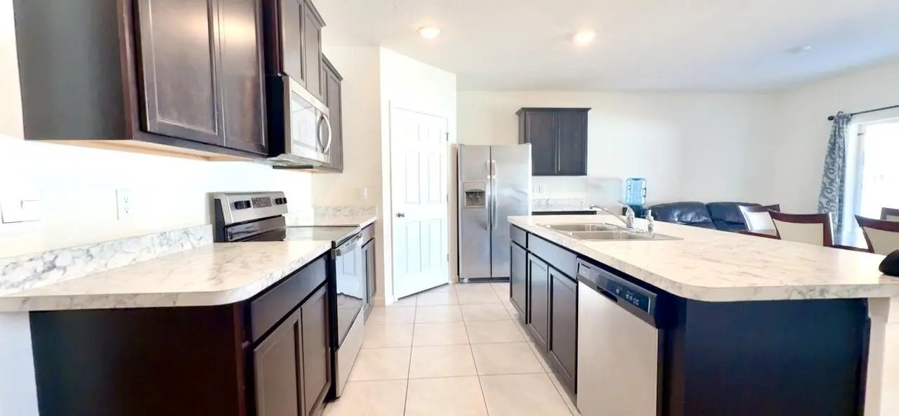Built in 2023, this highly desirable Cali floor plan blends modern design, smart technology, and everyday functionality in a thoughtfully designed split layout offering 4 bedrooms and 2 bathrooms. Upon entry, you're welcomed into a bright, open-concept living space ideal for both relaxing and entertaining. The heart of the home is the expansive kitchen, featuring stainless steel appliances, abundant cabinetry, a walk-in pantry, and a huge center island that provides generous space for meal prep, casual dining, and gathering with family and friends.This smart home is equipped with modern features designed for convenience, efficiency, and peace of mind. The private primary suite is tucked away from the secondary bedrooms, creating a peaceful retreat.