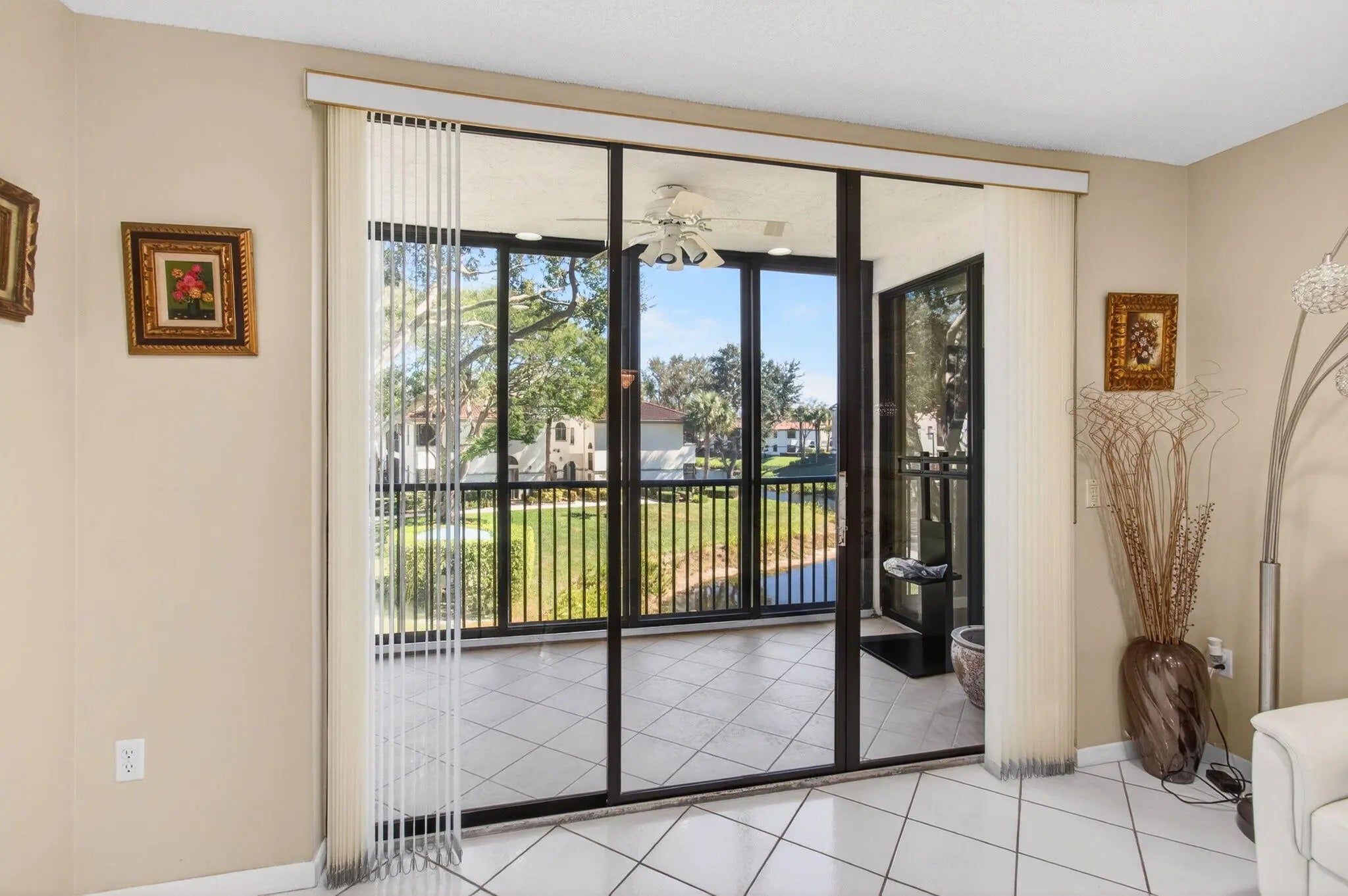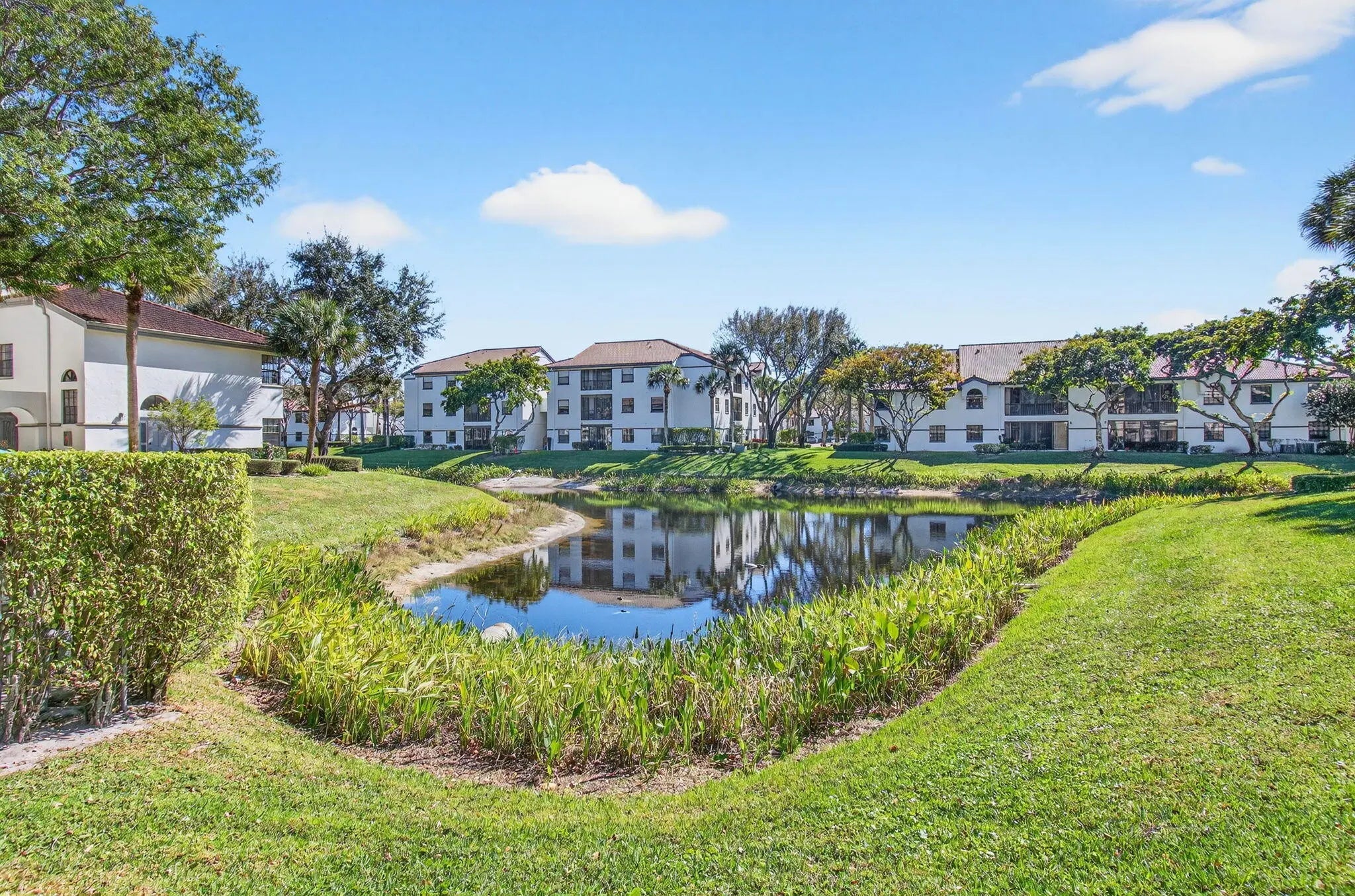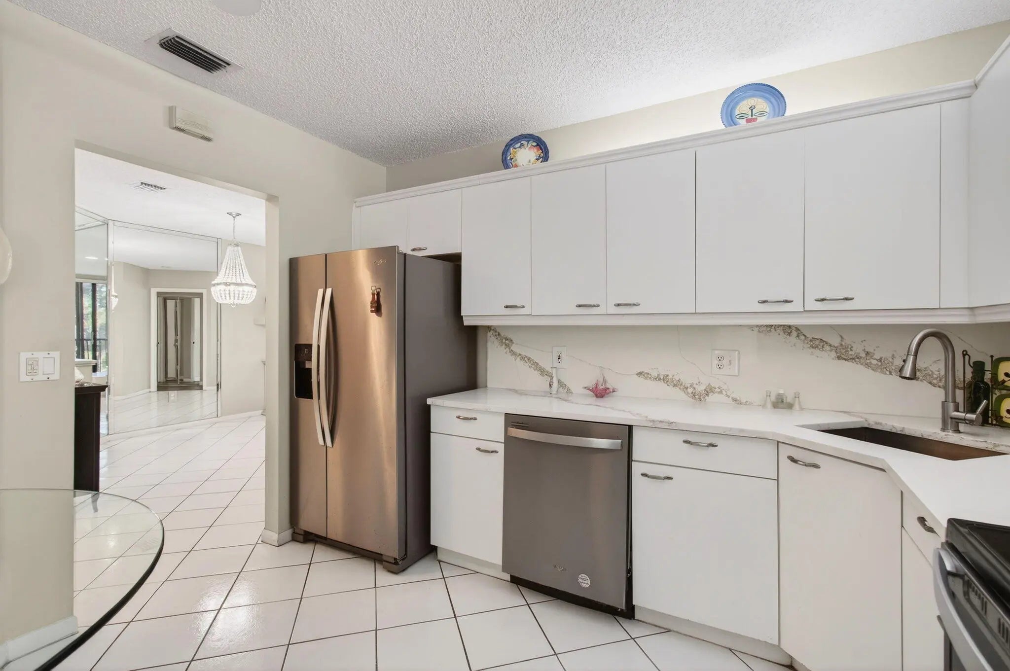 Welcome to this beautifully completely renovated 3 bedroom, 2 bath condo ideally situated on the 2nd floor with serene lake views in the highly desirable Platina community. This bright corner unit lives like a single-family home with its open, airy layout and abundant natural light.The interior has been thoughtfully modernized with diagonally set white ceramic tile flooring throughout the main living spaces -- living room, kitchen, dining area, and one bedroom -- creating a seamless and stylish flow. The additional bedrooms, including the generous master suite with its own lake vista, feature new laminate flooring. The gourmet kitchen boasts neutral quartz countertops with plenty of prep space, paired with stainless-steel appliances that complement the upgraded finishes.