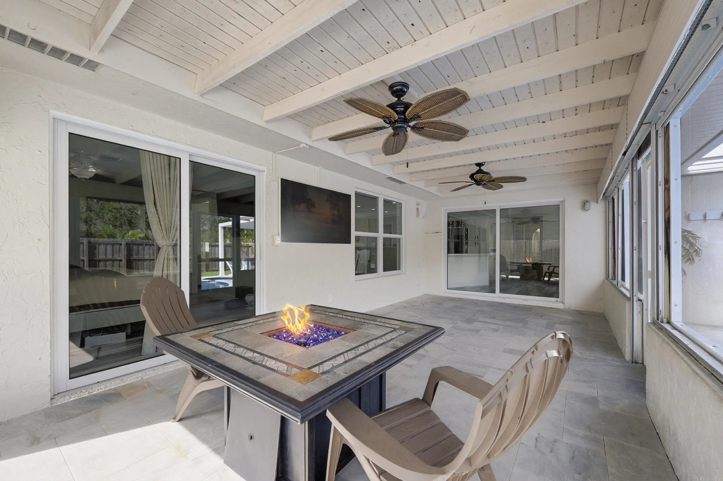Auto Sprinkler, Covered Patio, Custom Lighting, Fence, Screened Patio