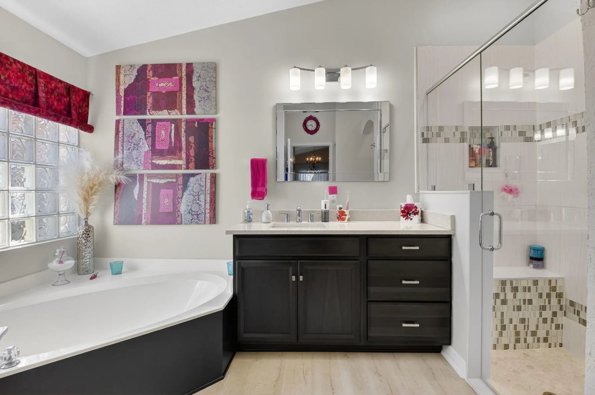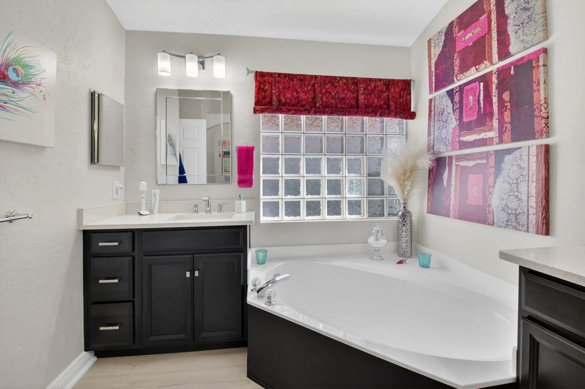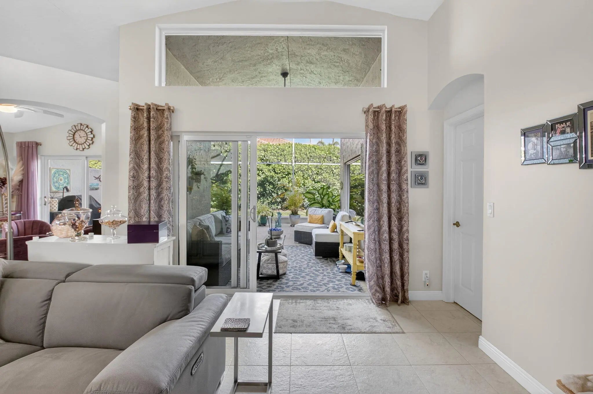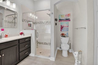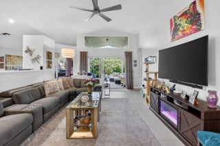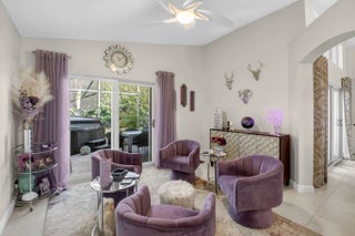 Welcome to this beautiful, bright 3-bedroom, 2-bathroom home located in the highly desirable Ponte Vecchio community. This well-maintained home features numerous upgrades throughout, offering both style and functionality.The kitchen showcases stunning wood cabinetry, along with quartz countertops, a breakfast bar, stainless steel appliances, including a refrigerator and stove just a few months old. Entertain with ease thanks to the added coffee bar and dry bar complete with a built-in wine refrigerator.Bathrooms are tasteful updated with wood cabinets, quartz counters, ceramic finishes. The spacious screened patio with elegant travertine tile is perfect for relaxing or entertaining and even includes a hot tub. The flexible family area can be used as a casual dining space or