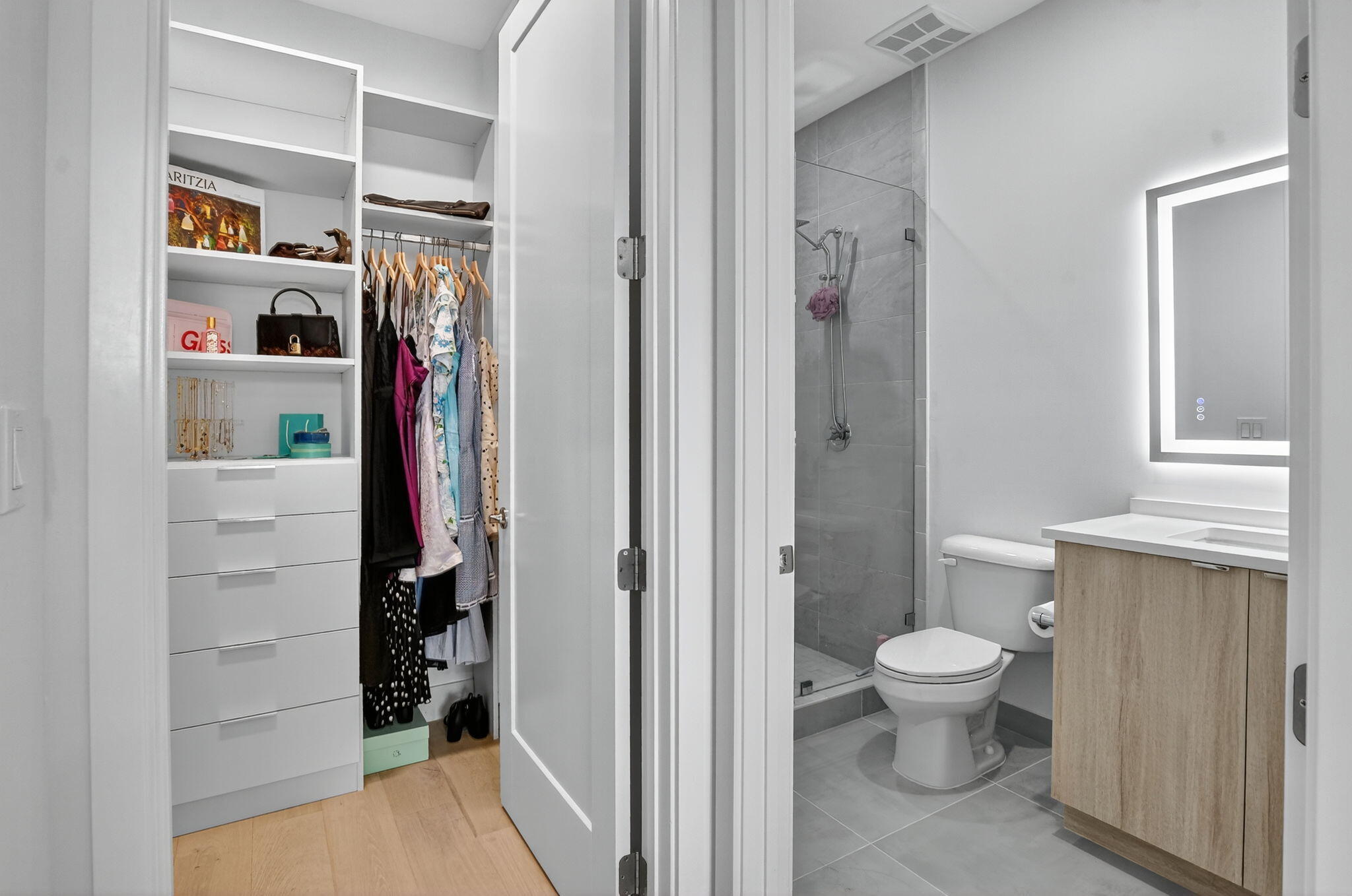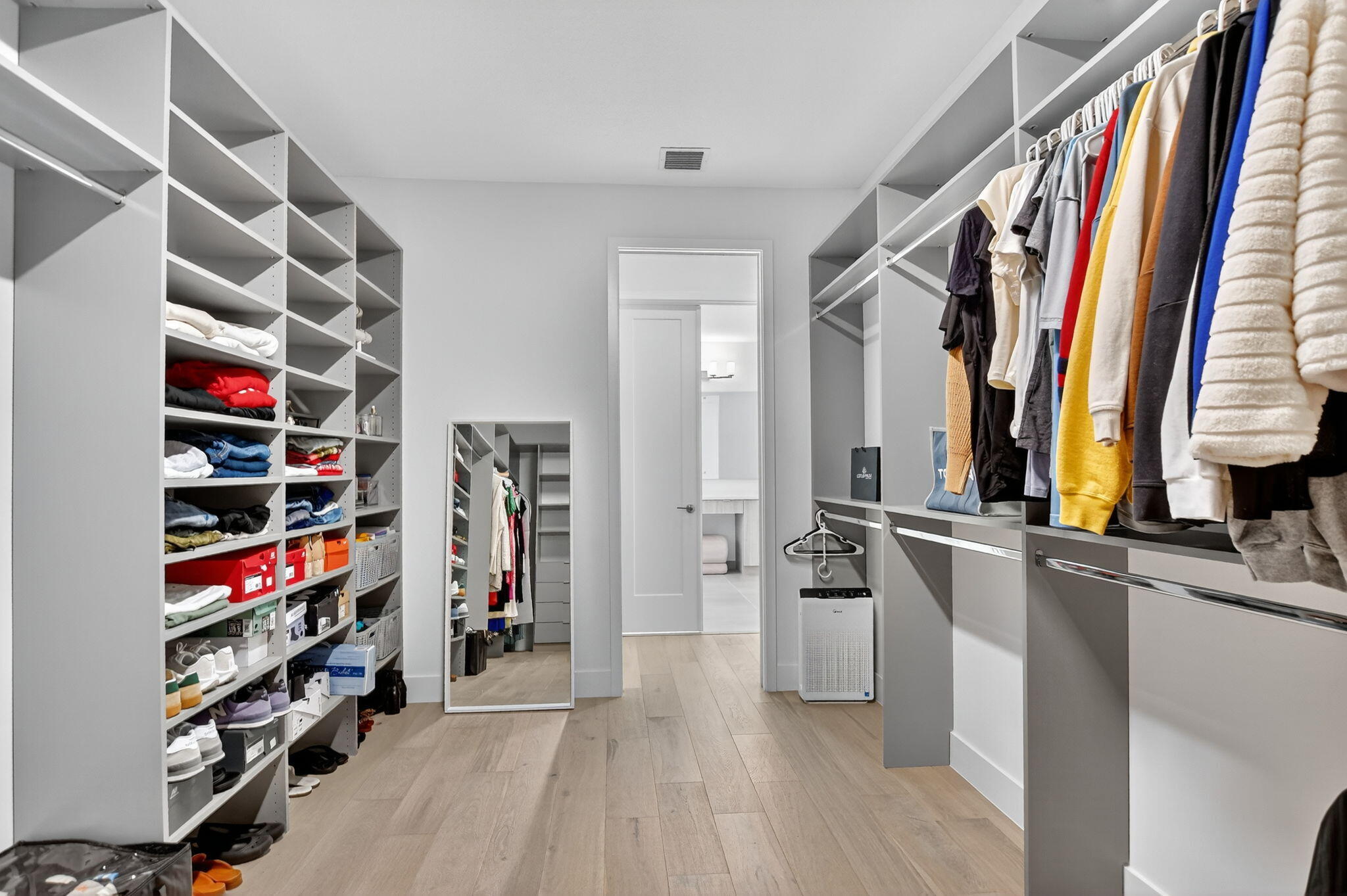 Built-in Shelves, Closet Cabinets, Custom Mirror, Laundry Tub, Upstairs Living Area, Volume Ceiling, Walk-in Closet