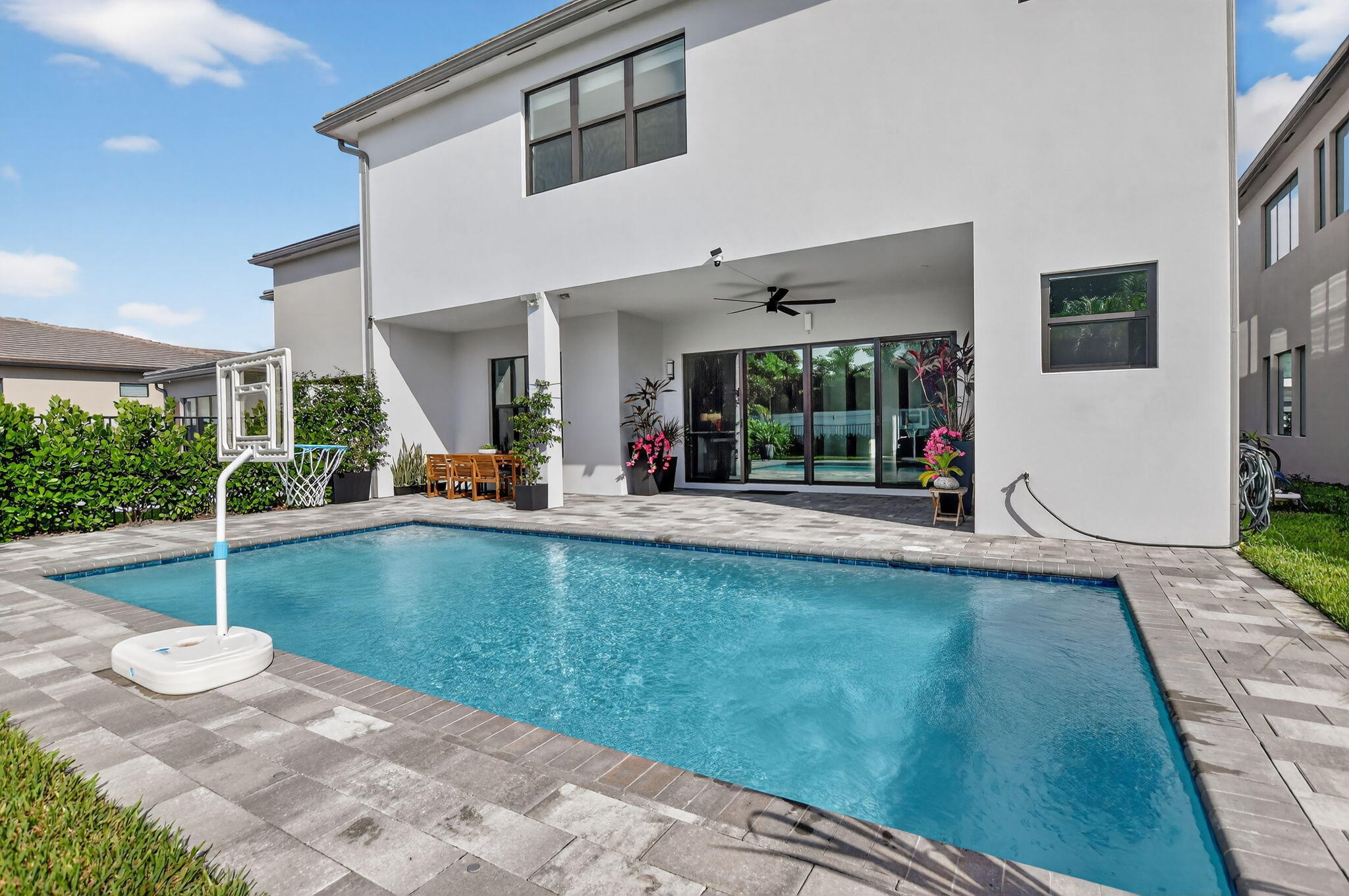 Step into luxury living in this stunning newer build residence offering over 4,600 square feet of thoughtfully designed space and located within an A rated school district. Boasting 5 spacious bedrooms and 7 full bathrooms, this home blends elegance, comfort, and functionality for today's lifestyle.The open layout features upgraded tile and wood flooring throughout, a formal dining room perfect for entertaining, and a convenient downstairs suite ideal for guests or multigenerational living. The chef's kitchen is a true showpiece, complete with floor-to-ceiling cabinetry and seamless flow into the main living areas.All bathrooms have been fully upgraded and include frameless glass shower doors, floor to ceiling upgraded tile and quartz countertops, delivering a sleek, spa like experience. Impact windows and doors provide peace of mind while enhancing energy efficiency. Step outside to your private, lush backyard oasis, highlighted by a saltwater pool, perfect for relaxing or hosting unforgettable gatherings. Ideally located just minutes from FAU, Boca Raton's pristine beaches, top-rated dining, places of worship, and a premier high-end mall with upscale shopping, this home offers both luxury and convenience. Enjoy an amenity rich community with no membership fees, delivering resort style living without the added cost. A rare opportunity to own a beautifully upgraded home that truly has it all location, privacy, lifestyle, and sophistication