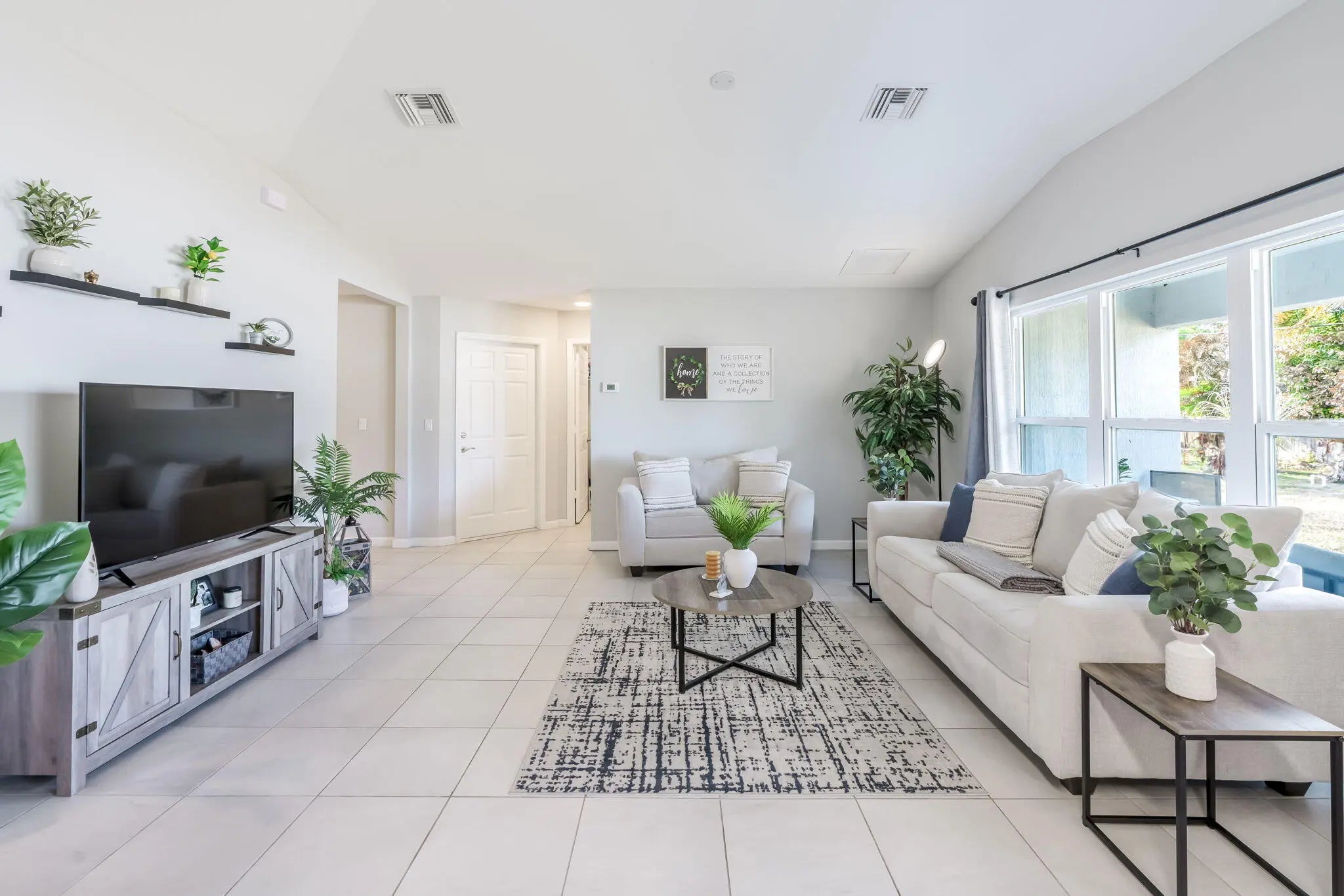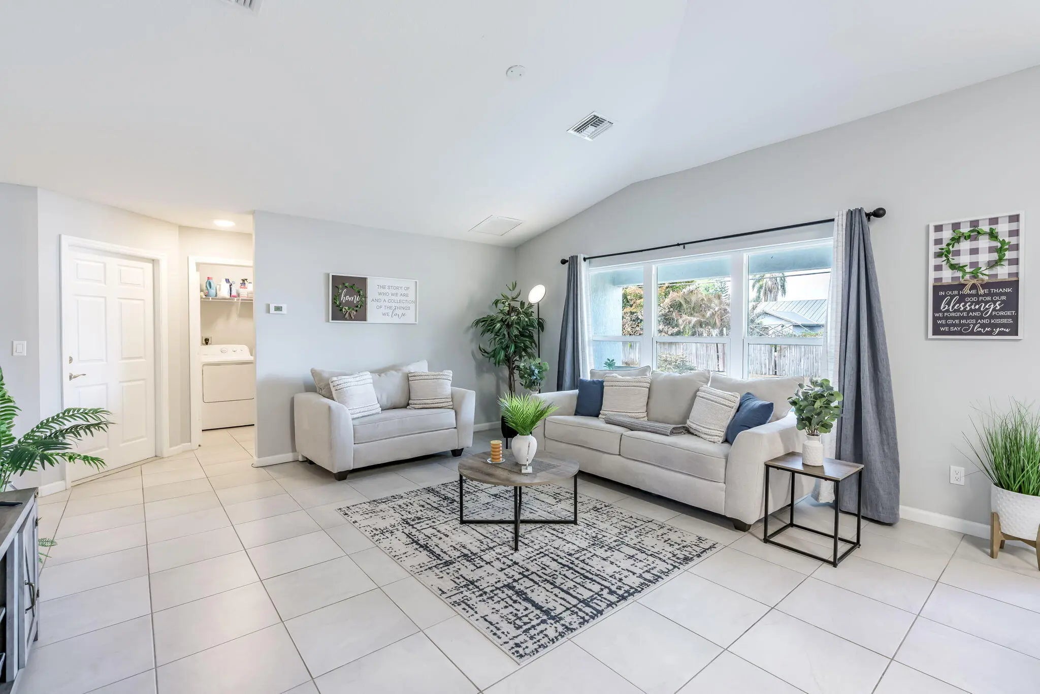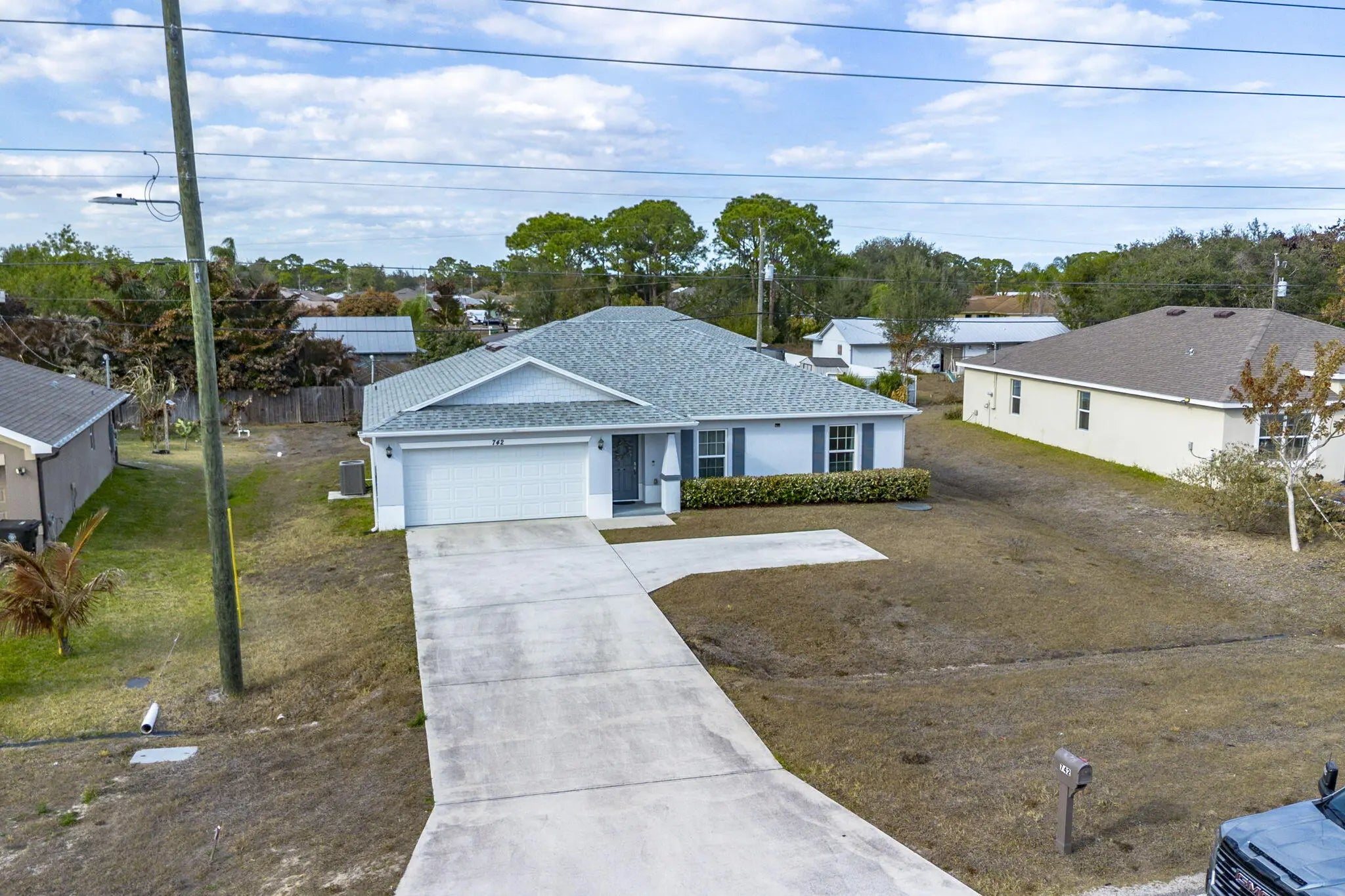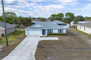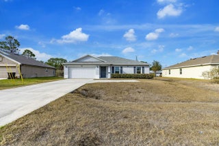NO HOA! Built in 2022 by Groza Builders (GBI), this CBS home offers 3 spacious bedrooms, 2 full bathrooms, and a 2-car garage. The open concept layout features vaulted ceilings and a desirable split floor plan for added privacy. Tile flooring flows through the main living areas, with carpet in the bedrooms for comfort. The kitchen is a standout with white cabinetry, granite countertops, stainless steel appliances, and ample storage ideal for cooking and entertaining. Enjoy outdoor living on the covered patio. Conveniently located just minutes from the Turnpike, this move-in ready home blends modern finishes with functionality in a growing Port St. Lucie neighborhood.