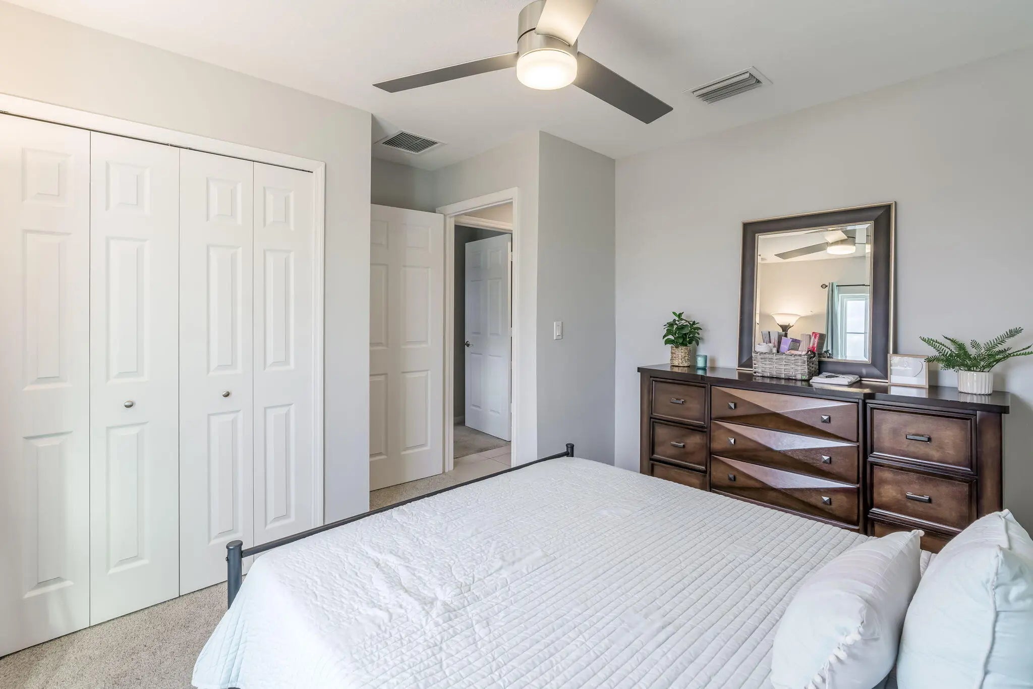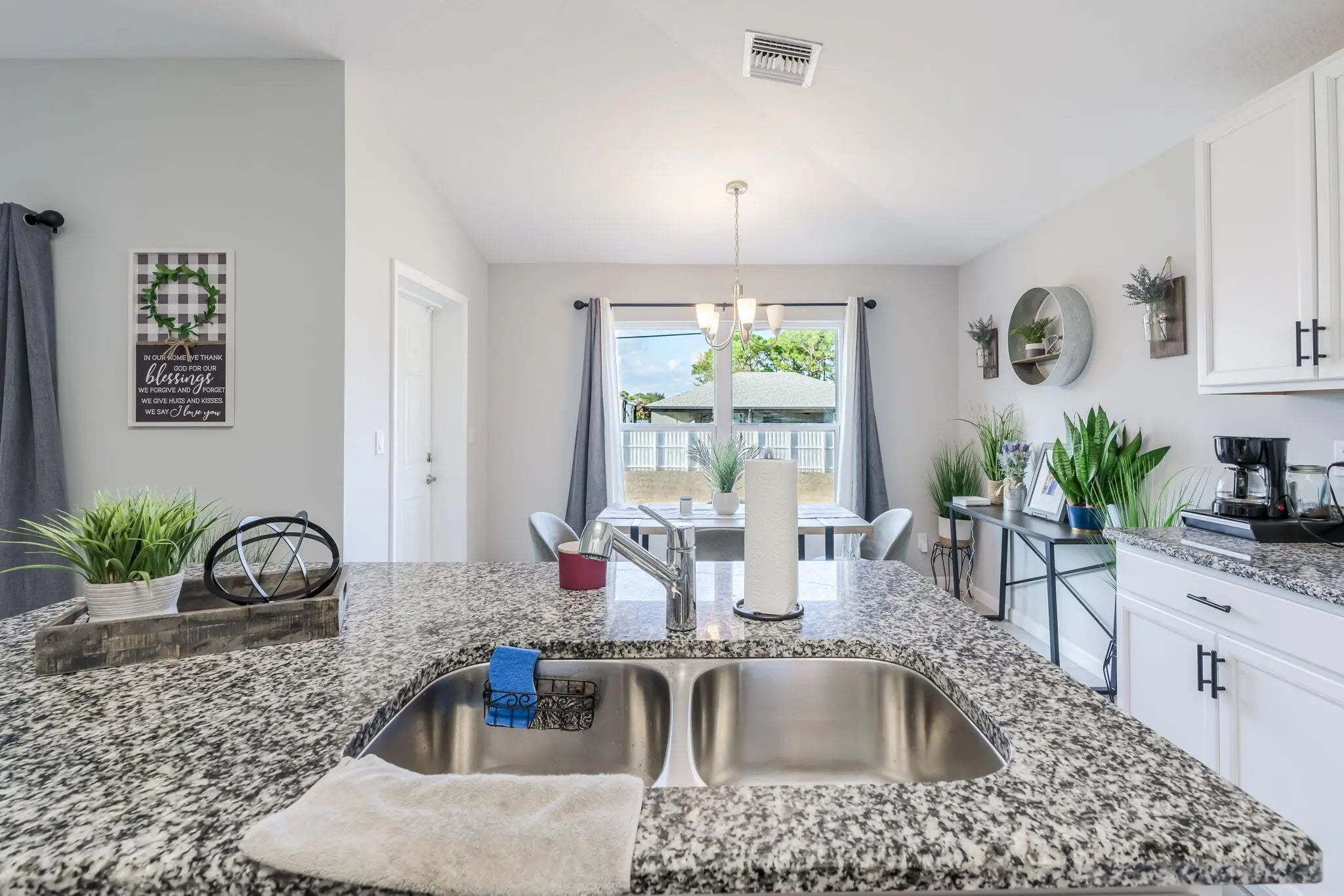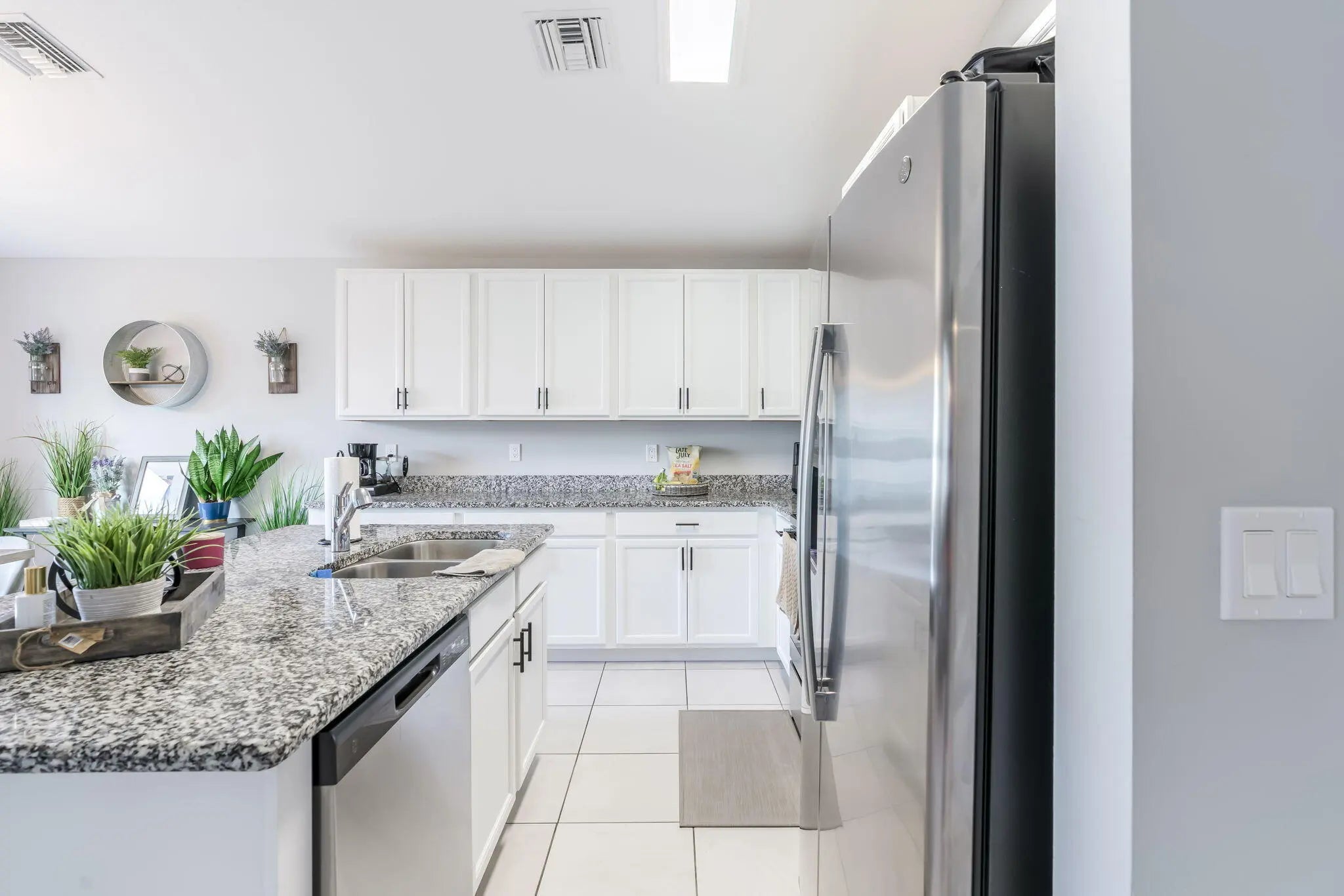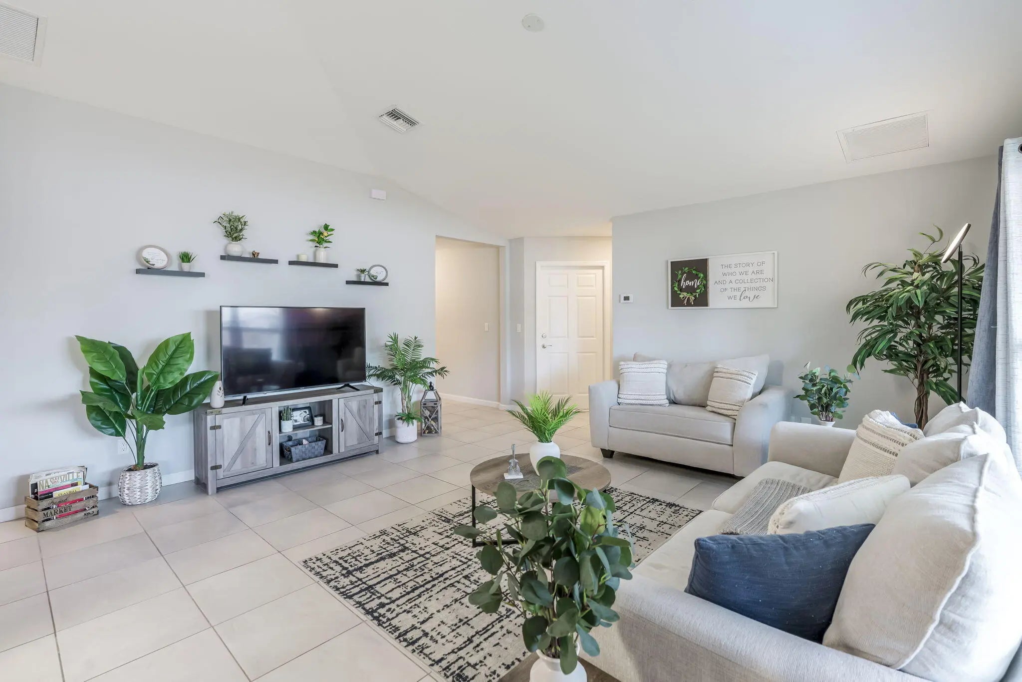NO HOA! Built in 2022 by Groza Builders (GBI), this CBS home offers 3 spacious bedrooms, 2 full bathrooms, and a 2-car garage. The open concept layout features vaulted ceilings and a desirable split floor plan for added privacy. Tile flooring flows through the main living areas, with carpet in the bedrooms for comfort. The kitchen is a standout with white cabinetry, granite countertops, stainless steel appliances, and ample storage ideal for cooking and entertaining. Enjoy outdoor living on the covered patio. Conveniently located just minutes from the Turnpike, this move-in ready home blends modern finishes with functionality in a growing Port St. Lucie neighborhood.
