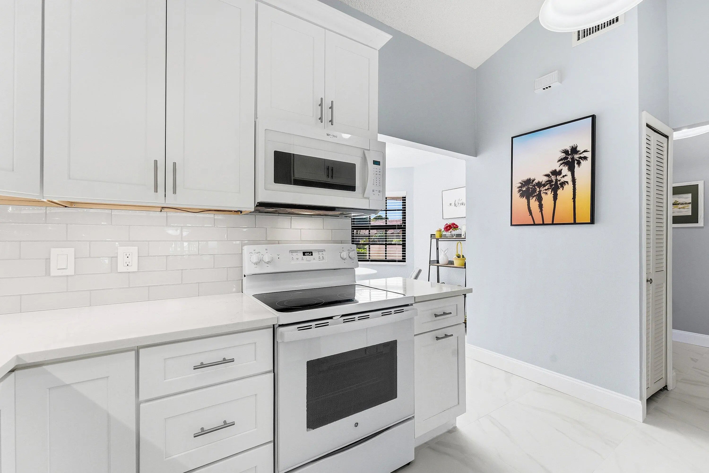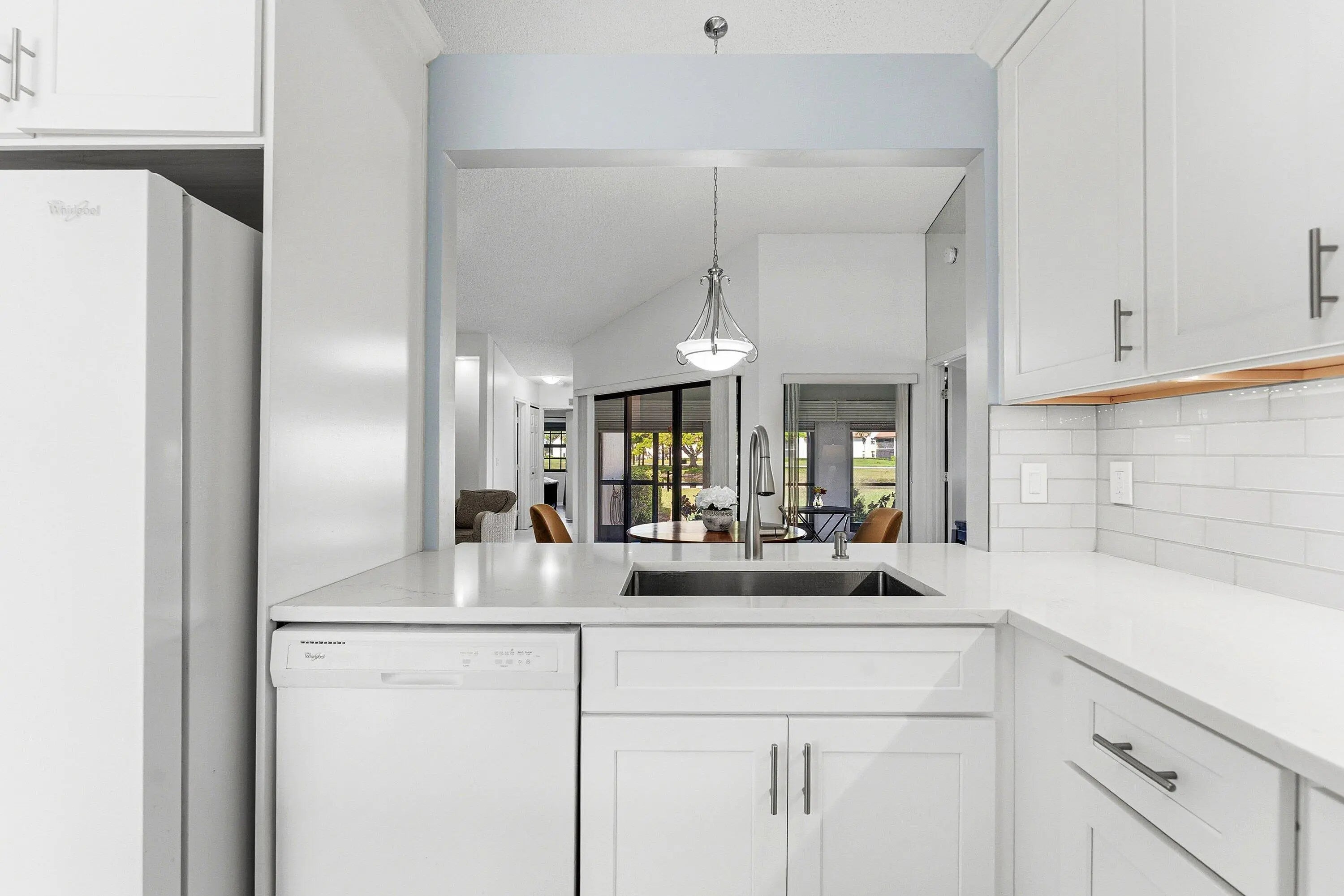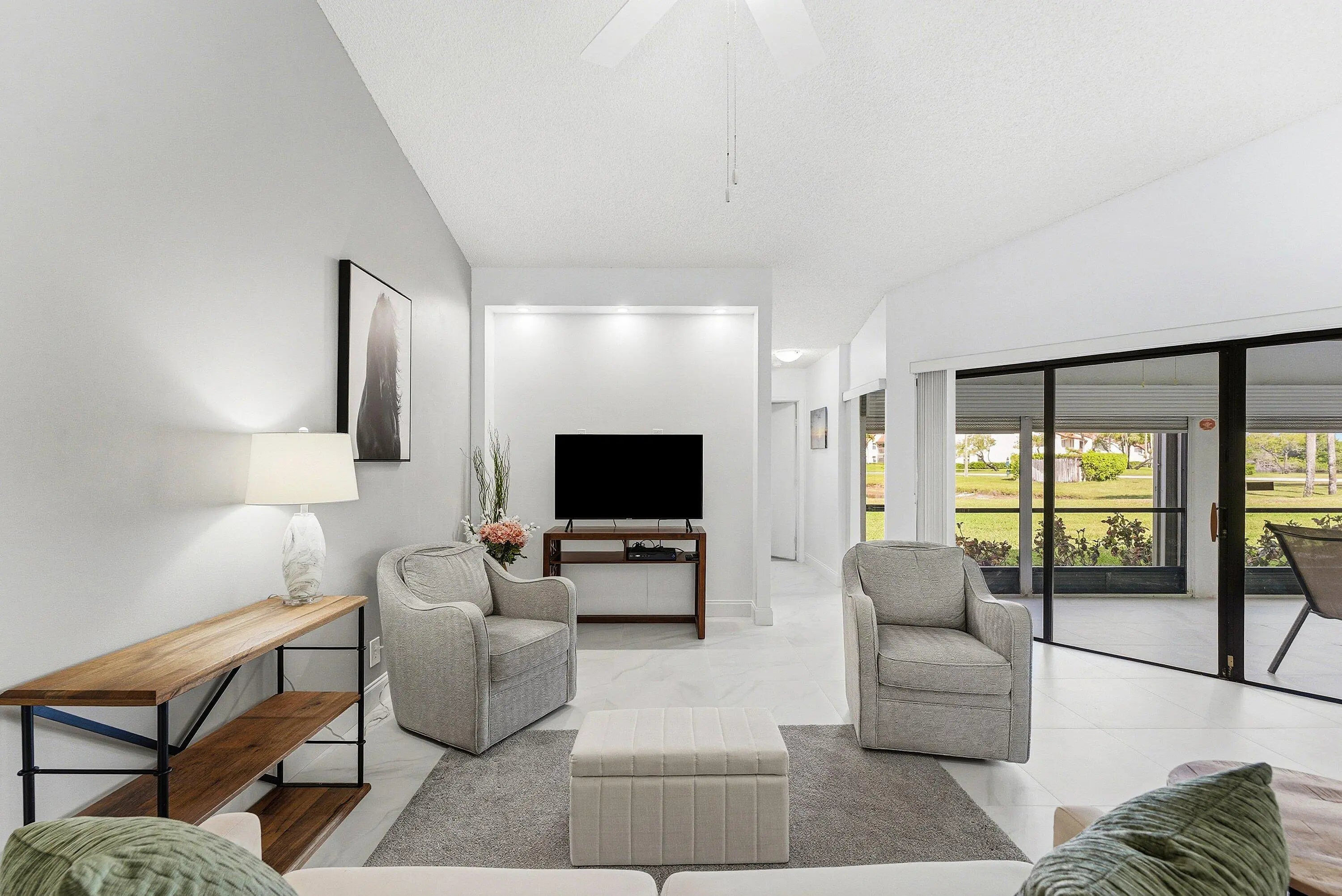 Waterfront living at its best in the Shores at Aberdeen, a 55+ active adult community with NO Membership Fees. This Newly Renovated Villa is a 2 bed, 2 baths, 1 car garage has stunning lake views with screened patio. The home is bright, light and features open floor plan with volume ceilings and new 24x24 ceramic tiles. Designer kitchen, quartz countertops and mosaic glass backsplash showcases its modern feel. Primary suite is generously sized and features a walk-in closet, updated bath, dual sinks and walk-in-shower. The oversized porch with lake views is a perfect place to relax and entertain family/friends. Home upgrades include; Roof 12/2024, Impact Window/Doors 2014-2024, Water Heater 2018, Ceramic Tile Floors 1/2026, Paint 1/2026, Front Screen Enclosure 2025 & A/C-1/2026.