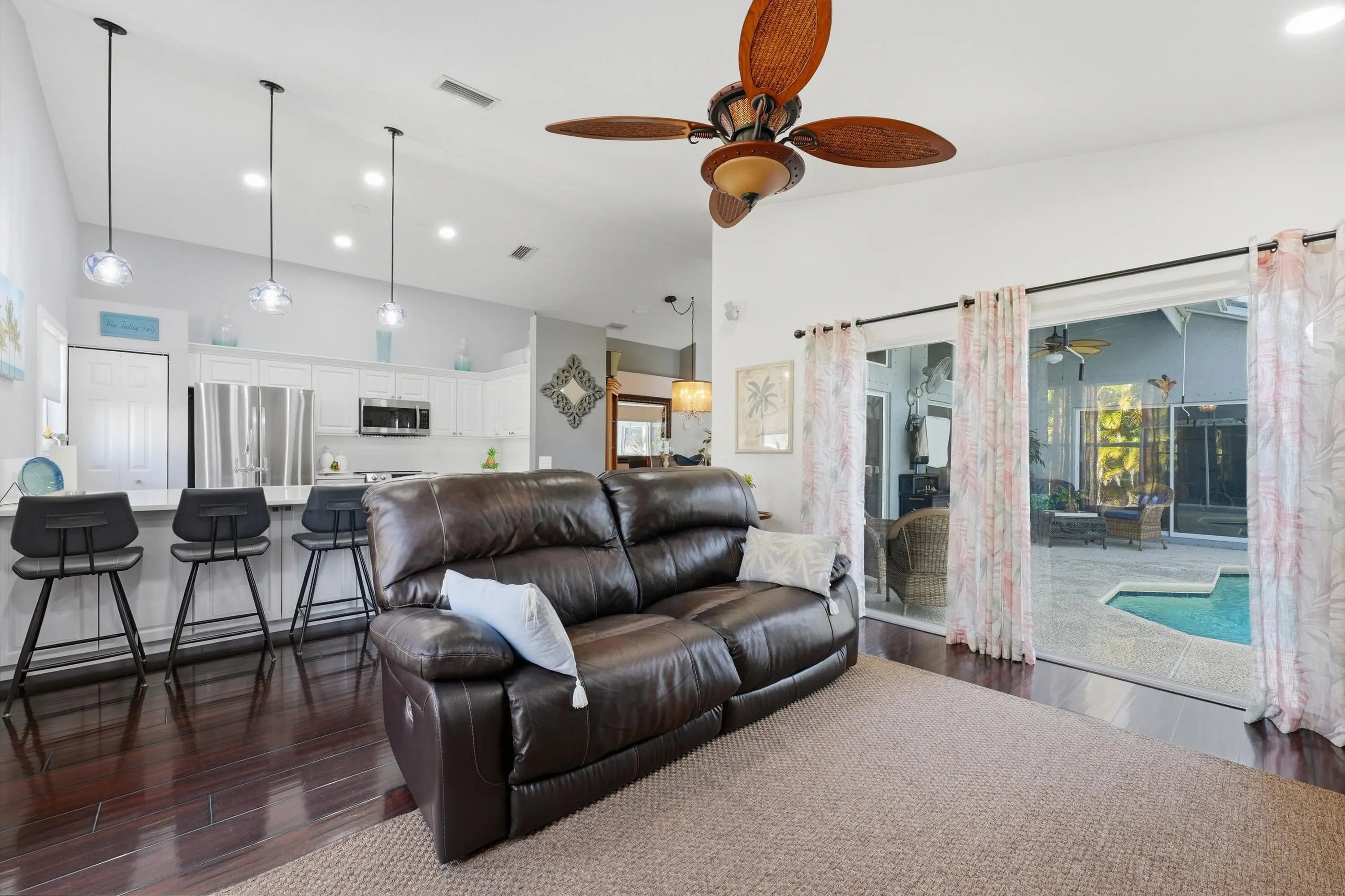 This highly desirable concrete block pool home in River Forest is truly move-in ready, with all major updates already completed. Features include an updated kitchen, new front door, replaced sliding glass doors, updated plumbing and lighting, newer appliances, a full landscaping package, whole-house gutters, and a generator hookup. The private pool was recently resurfaced, features a new pool pump (2025), and is ideal for worry-free Florida living. The roof was replaced in 2018, the air conditioner was replaced in 2024, and the patio features new permanent roofing, perfect for year-round outdoor enjoyment. Designed for effortless Florida lifestyle living, this home has everything you could want--just unpack and enjoy paradise. River Forest offers an impressive clubhouse with heated pool, f