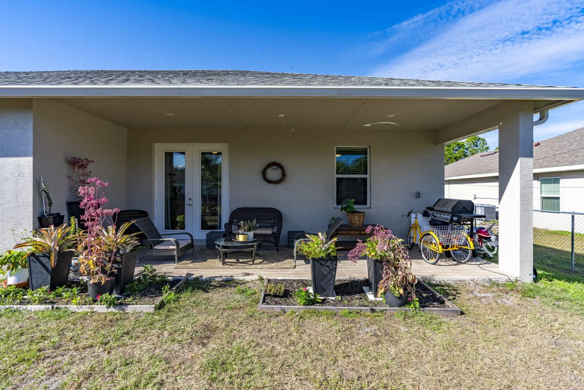 Step into relaxation with this stunning 4-bedroom, 2.5-bath Dream Home. Boasting an array of premium upgrades and thoughtful features that create a unique and custom living experience. As you step inside, you are greeted by a beautiful open-concept floor plan that includes Granite countertops, plank-style wood tile. High ceilings, with custom ceiling fans and large Impact windows throughout. Providing security that allows for abundant natural light, regardless of the weather enhancing the home's sense of space and airiness. The thoughtfully designed split layout is perfect for both intimate and family living. The property is spacious with a front and back patio for entertaining, fence for extra security, and ready for your in-ground pool. Call for your private tour today!