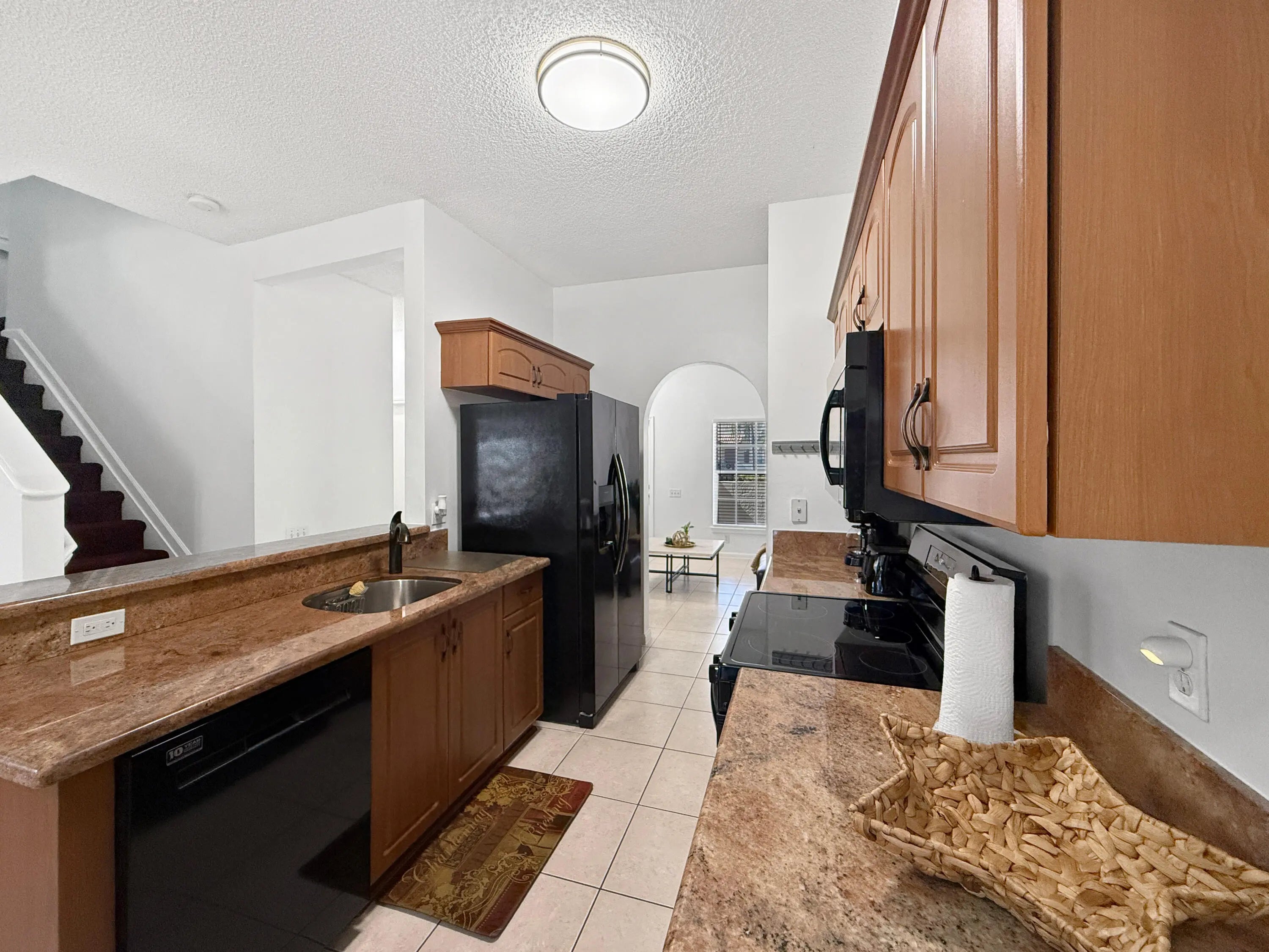 Furnished 2-story town home in Dania Beach for annual lease in gated community. This 3BR/2.5BA/1 car garage plus extensive driveway. Residence features over 1630 sq ft of living space, 9' ceilings, fresh paint, tile & carpet flooring, & tons of natural light. Layout includes formal living & dining rooms, plus a warm kitchen with wood cabinetry, granite countertops, black appliances, & an eat-in bar open to the family/TV room. Enjoy a private screened patio with serene garden views & accordion shutters. Upstairs, the primary suite offers tray ceiling, large walk-in closet, & en-suite bath with soaking tub, separate shower, plus double vanity. Bedrooms 2 & 3 share a spacious bath. Amenities include pool, tennis, clubhouse, & playground. 1 pet under 10 lbs. HOA approval is quick. See today!