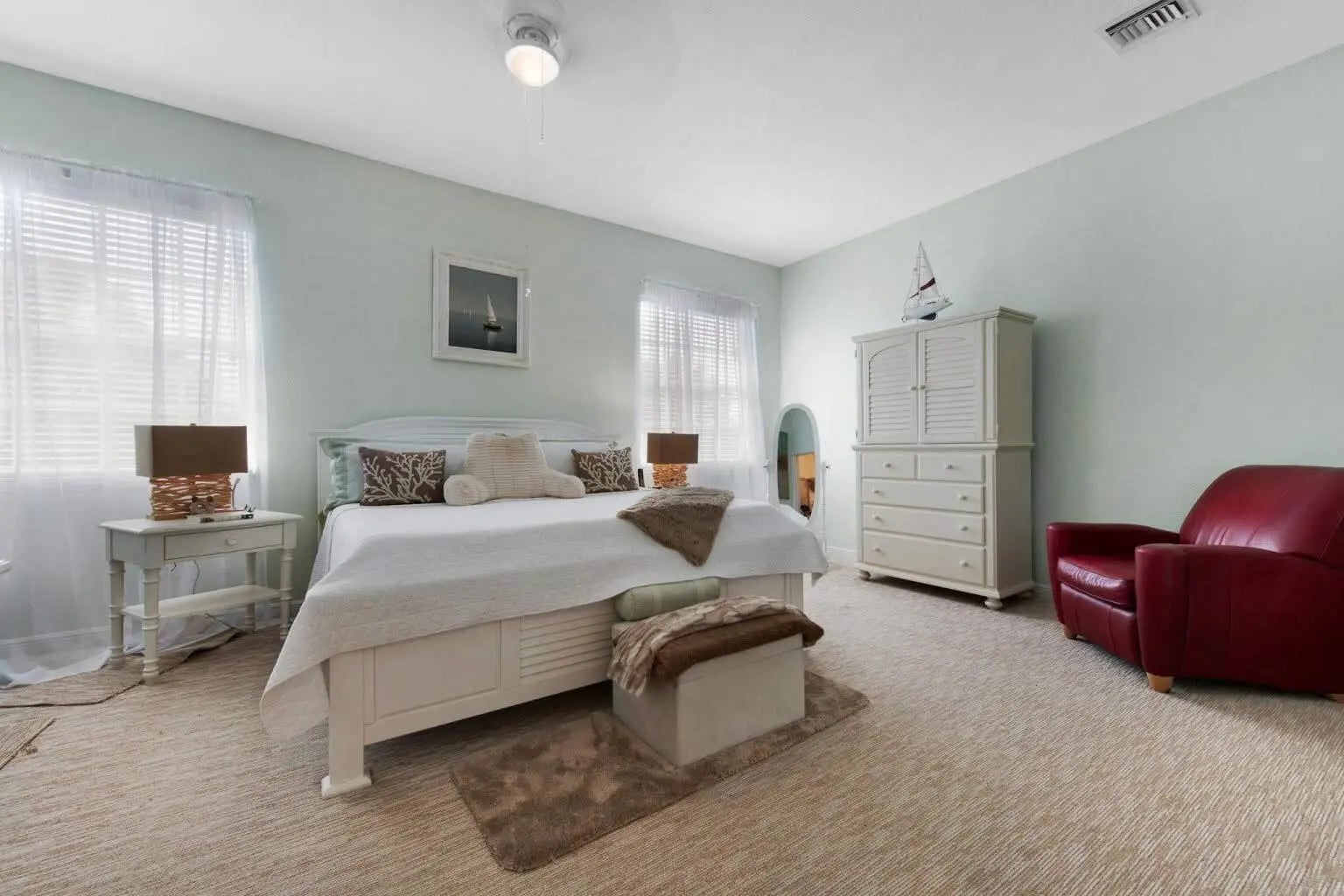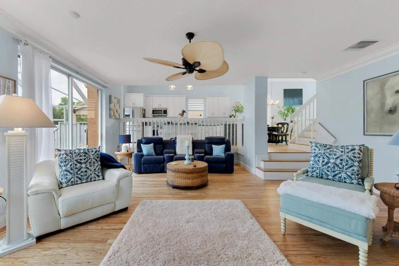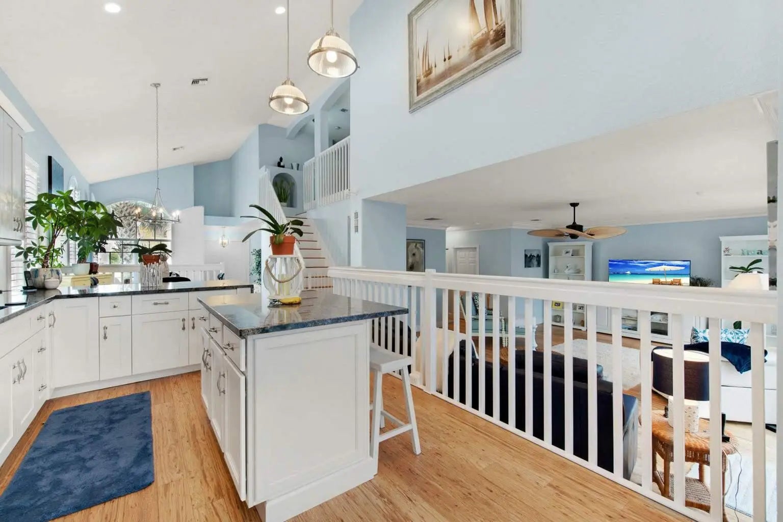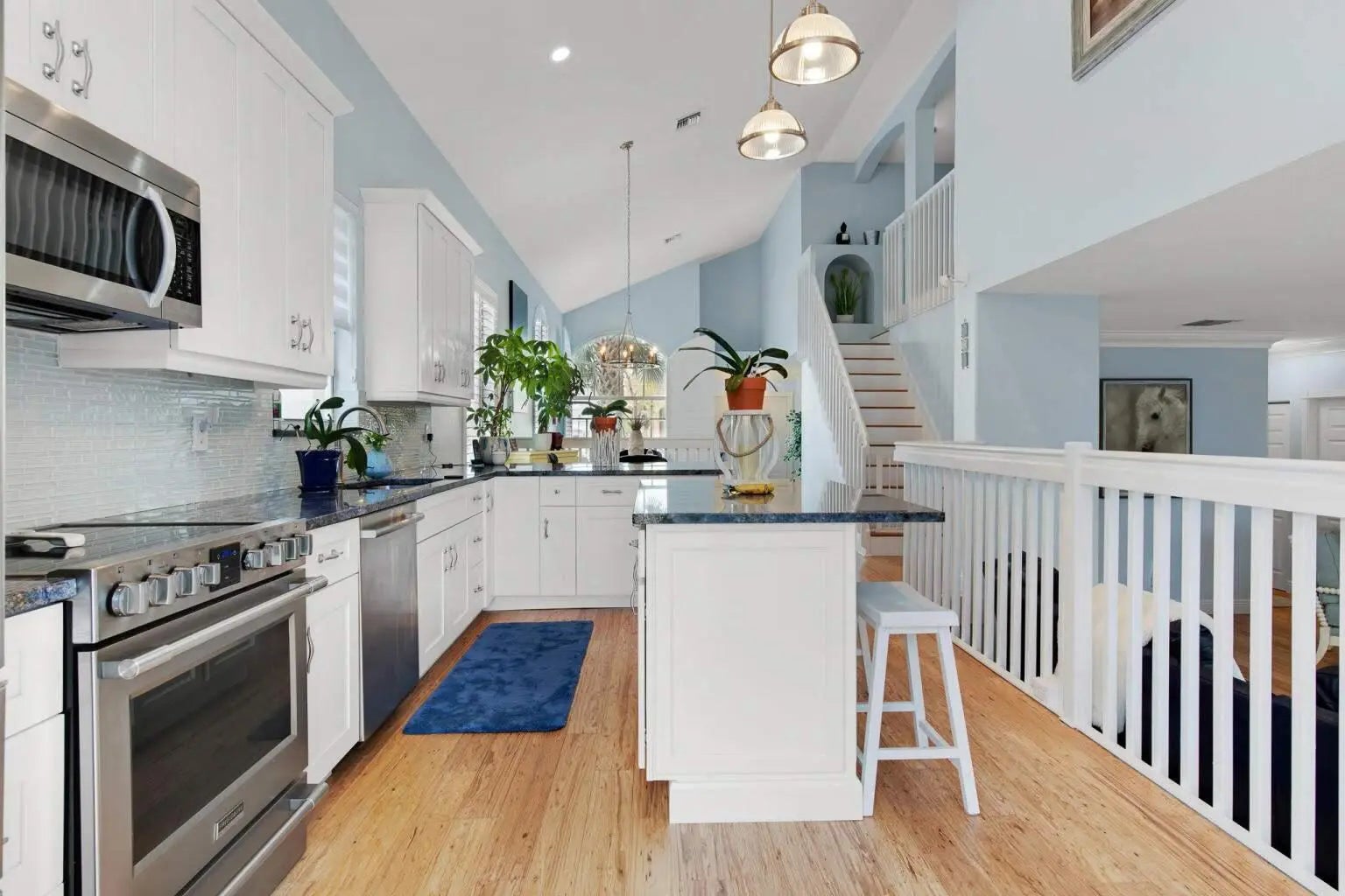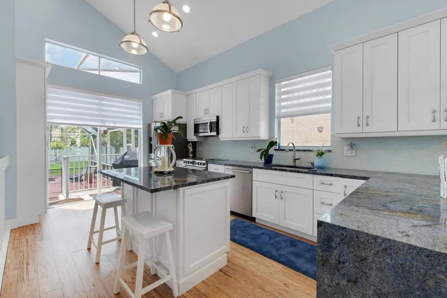 Discover your dream home in the prestigious Madison Green Country Club, a vibrant golfcommunity. This stunning two-story residence offers 2,109 square feet of luxury living with 3bedrooms, 3 full bathrooms, and a 2-car garage. Situated in a gated community on a spaciouslot at the end of a cul-de-sac, it features a sparkling pool and an inviting atmosphere.The first floor welcomes you with soaring cathedral ceilings and abundant natural light,complemented by elegant eucalyptus wood flooring and plantation shutters. The kitchen boastsbeautiful cabinetry, modern appliances, and stunning blue Bahia granite countertops, while theexpansive living room opens to a picturesque view of the pool and backyard. Upstairs, theprimary suite offers a luxurious bathroom with dual sinks