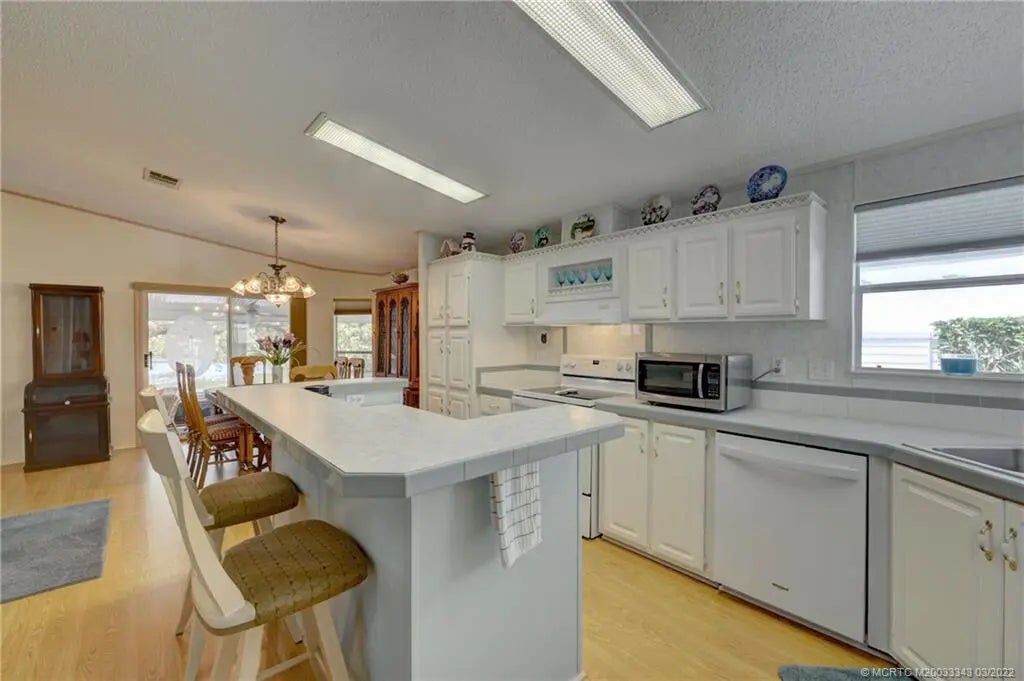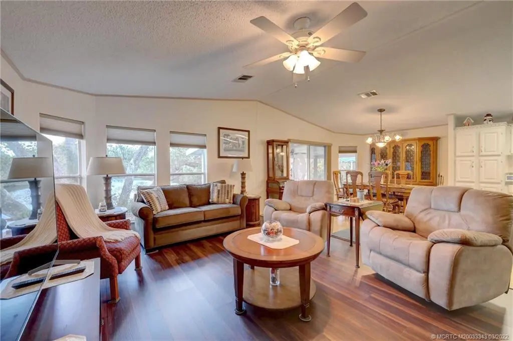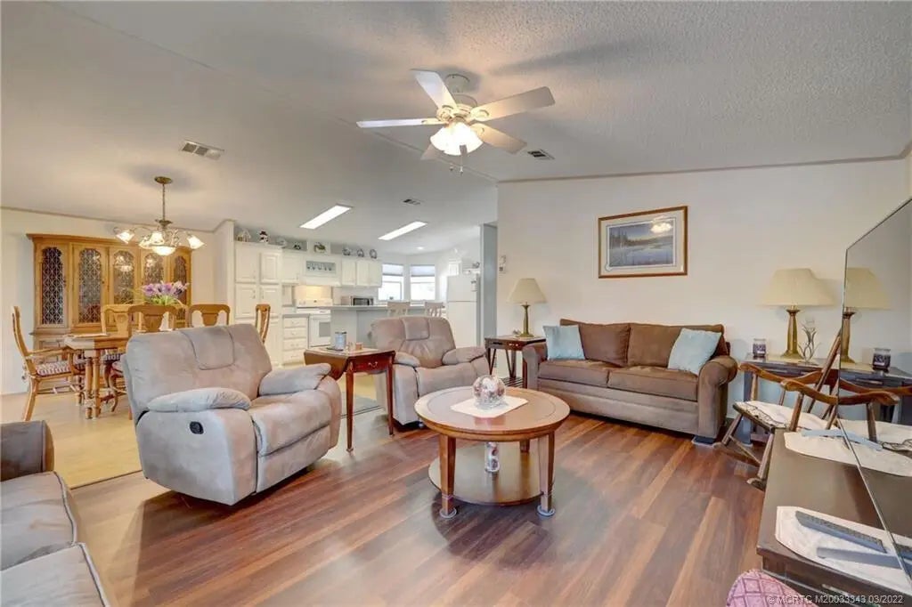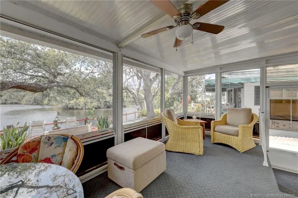 PRICED TO SELL QUICKLY! OCEAN ACCESS! Unbelievable views down a wider part of the South Fork of The St. Lucie River & a nature preserve from this 1998 Fleetwood manufactured 2/2 home with open floor plan & cathedral ceilings. NO HOA. YOU OWN THE WATERFRONT LOT! Fixed bridge with 6'Newer light fixtures, water heater & roof shingles (2020). New kitchen appliances, washer & dryer, sinks & faucets, vinyl plank flooring in living room (2022). Relax in the screen porch/Florida Room while watching boats & kayakers pass directly behind this riverfront home. You will not be disappointed! Royal palms line the driveway for up to six vehicles in addition to the 1-car carport. Part of driveway was reinforced for a motorhome. Boat dock, utility storage & inside laundry room. Furniture Available