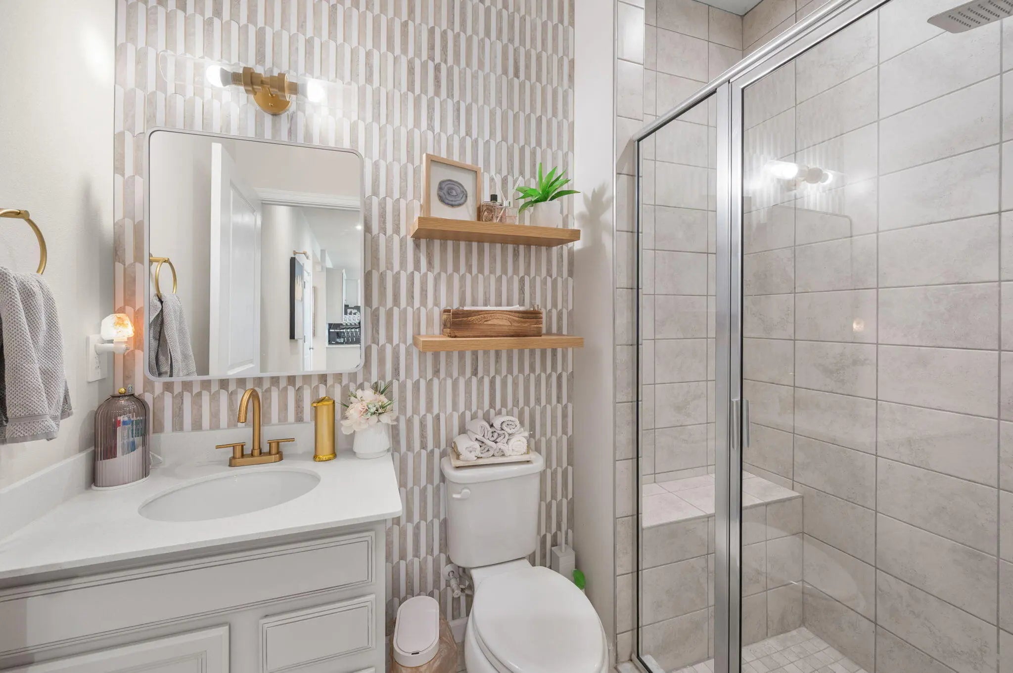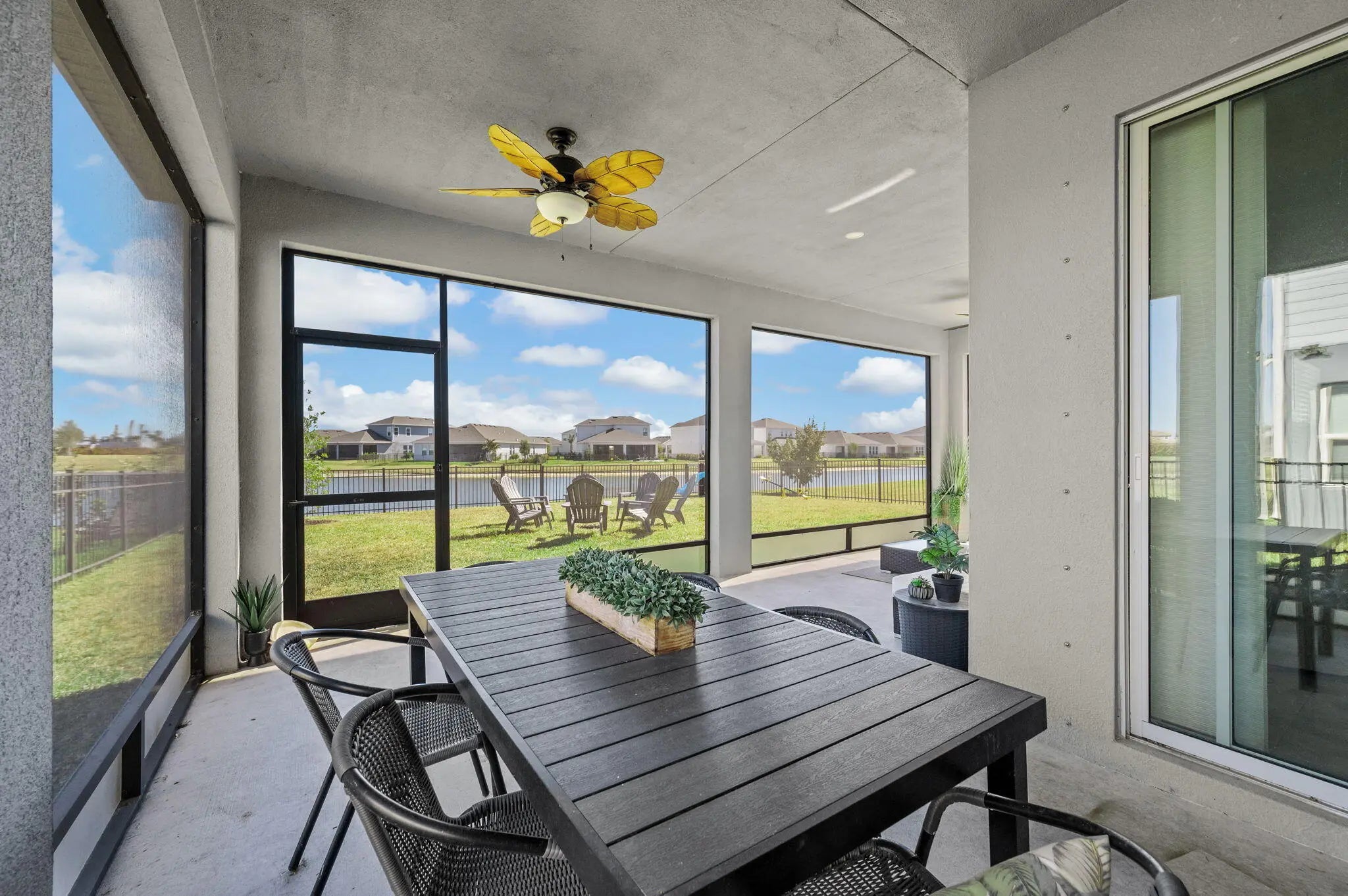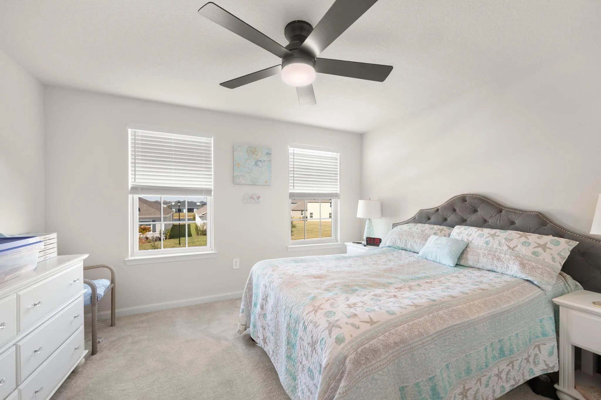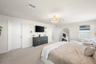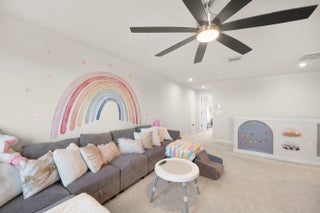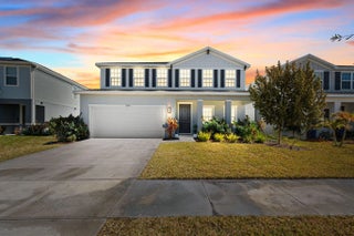The highly sought-after Lynn Haven Plan offers 5 bedrooms, 3 bathrooms, a versatile loft, a glass French door study, and an extended lanai. This home features an upgraded kitchen with modern finishes, perfect for everyday living and entertaining, along with upgraded bathrooms that add style and comfort throughout. Designed for convenience, the main level includes a bedroom and full bath, ideal for one-level living or hosting guests. Upstairs, enjoy a spacious family room and a luxurious primary suite with a walk-in closet, dual-sink en-suite bath, and a separate water closet. Three additional bedrooms and another full upgraded bath complete the upper level. Modern features such as a WiFi-enabled garage door opener and Ecobee thermostat enhance comfort and functionality.