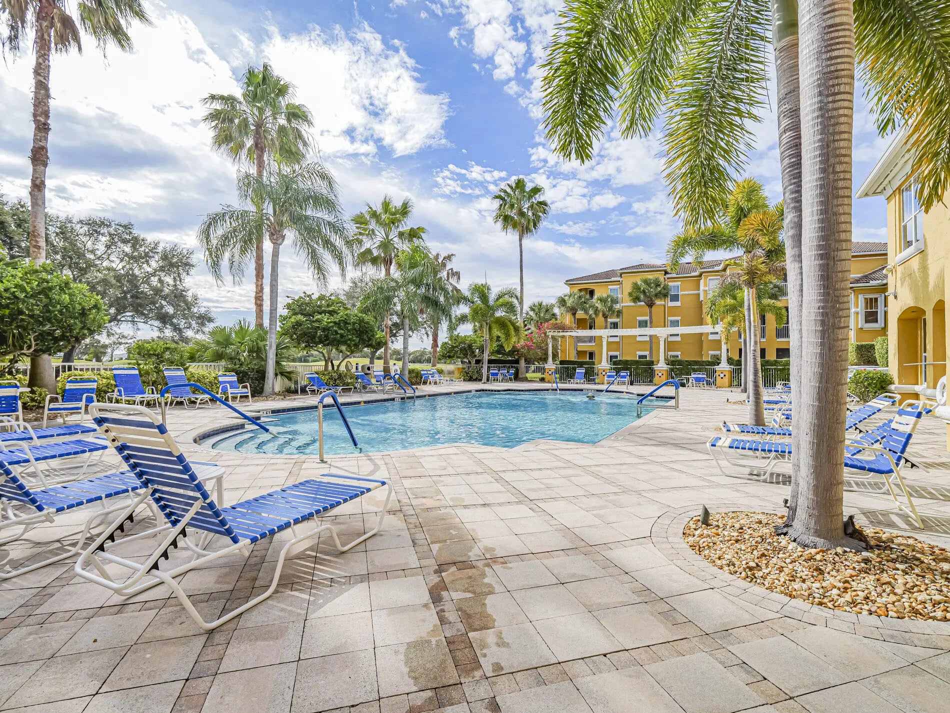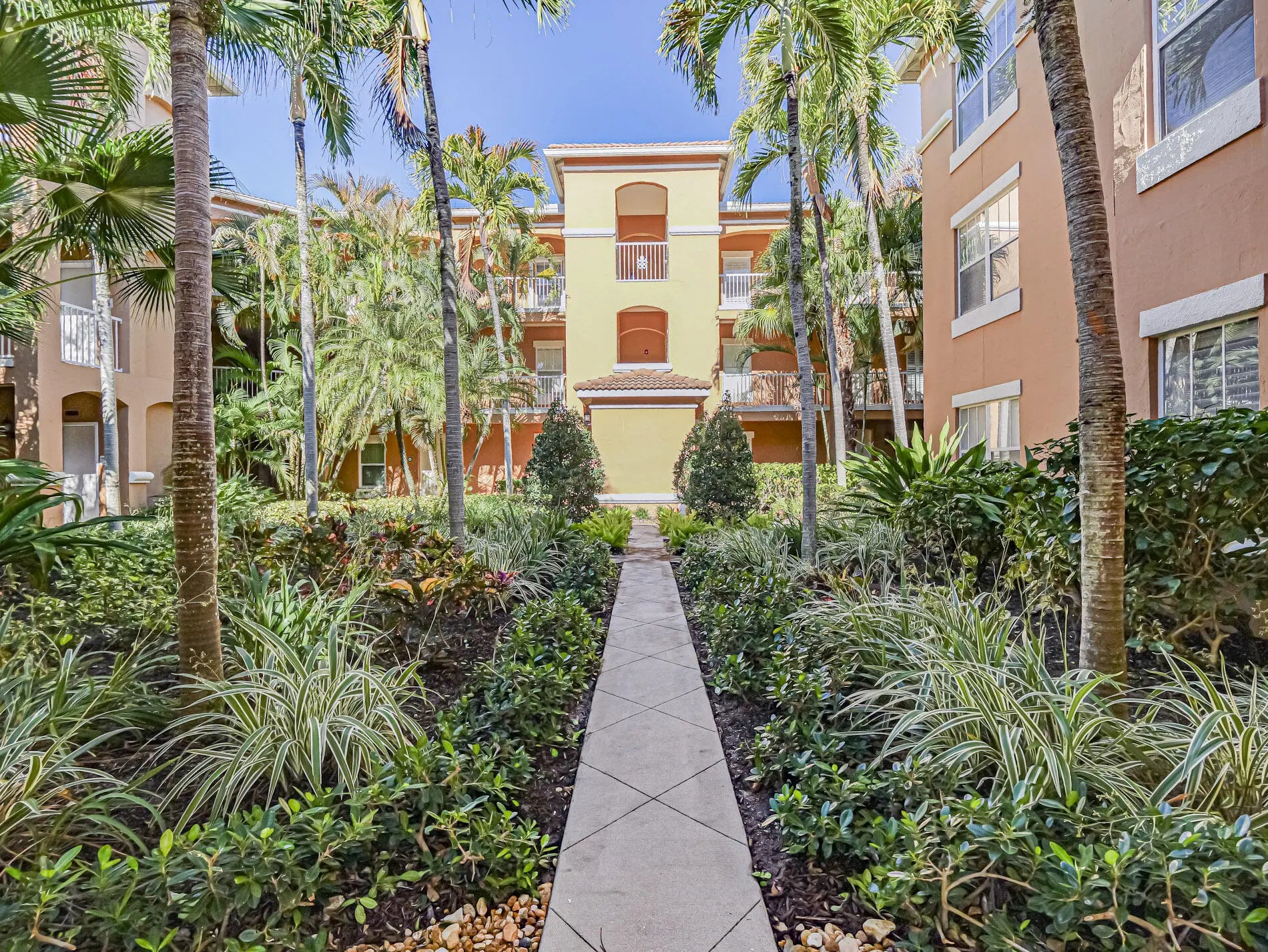 Beautiful 2/2 second-floor courtyard-style condo with 1,223 sq ft. Entry via the building's central interior courtyard. Tile in main living area, spacious master bedroom with walk in closet, laundry room, and covered balcony with storage. Elevator building! Fabulous location--steps to the clubhouse and pool and only 8 min. to the beach. Close to shopping, dining, and medical facilities. A perfect blend of convenience, comfort, and Florida lifestyle!