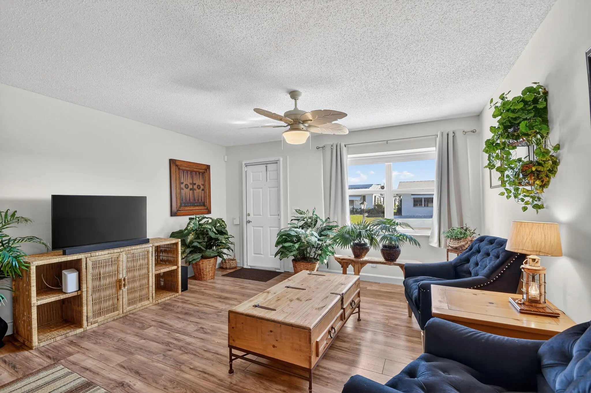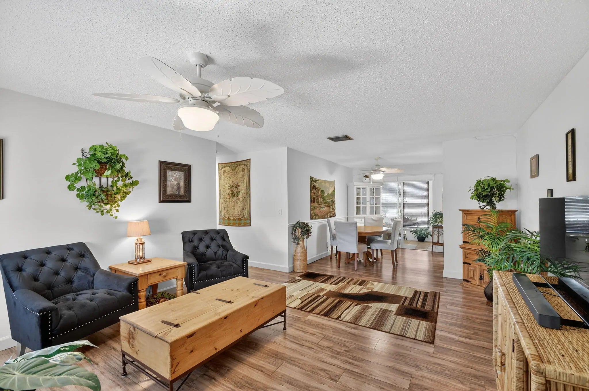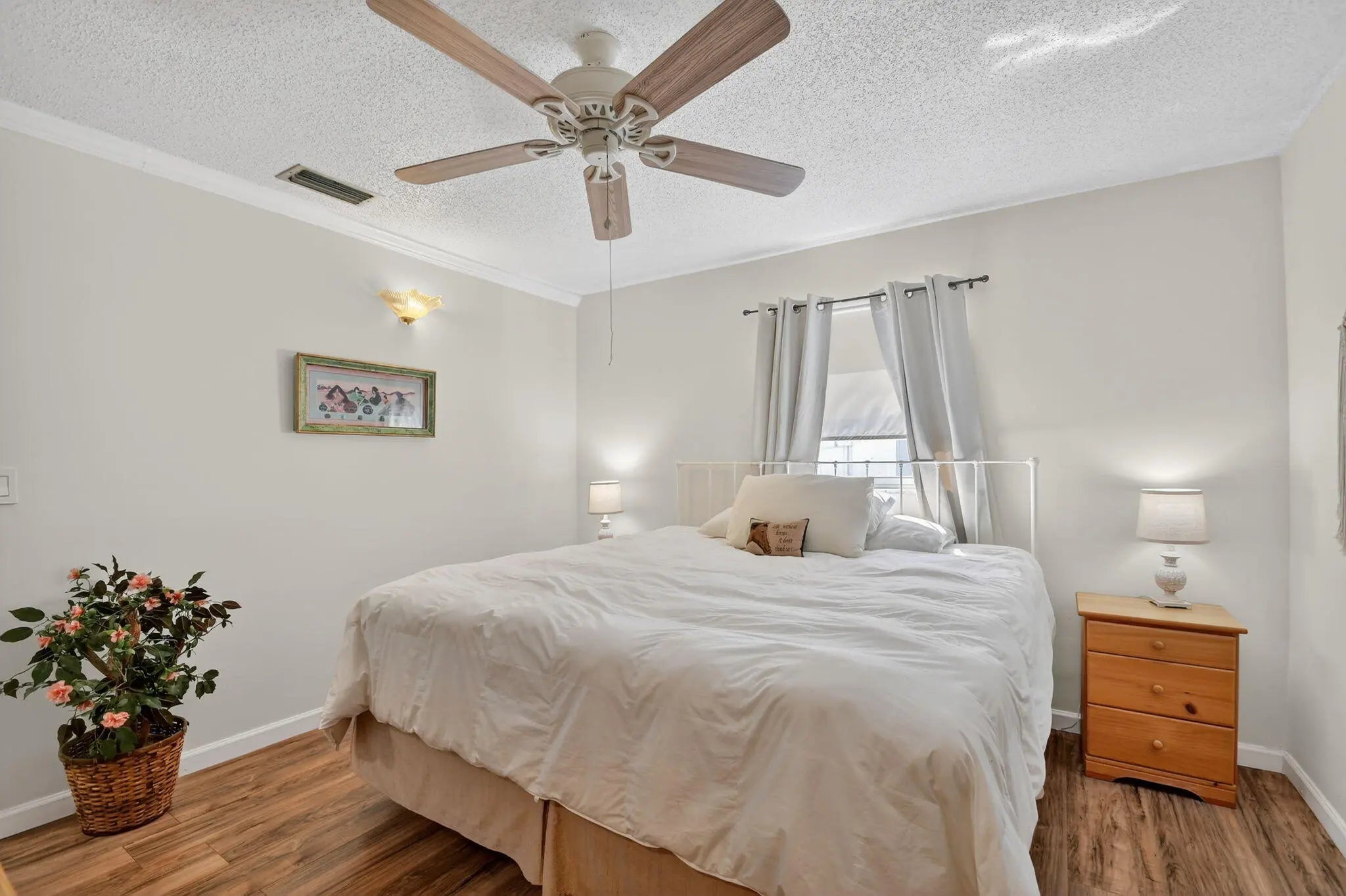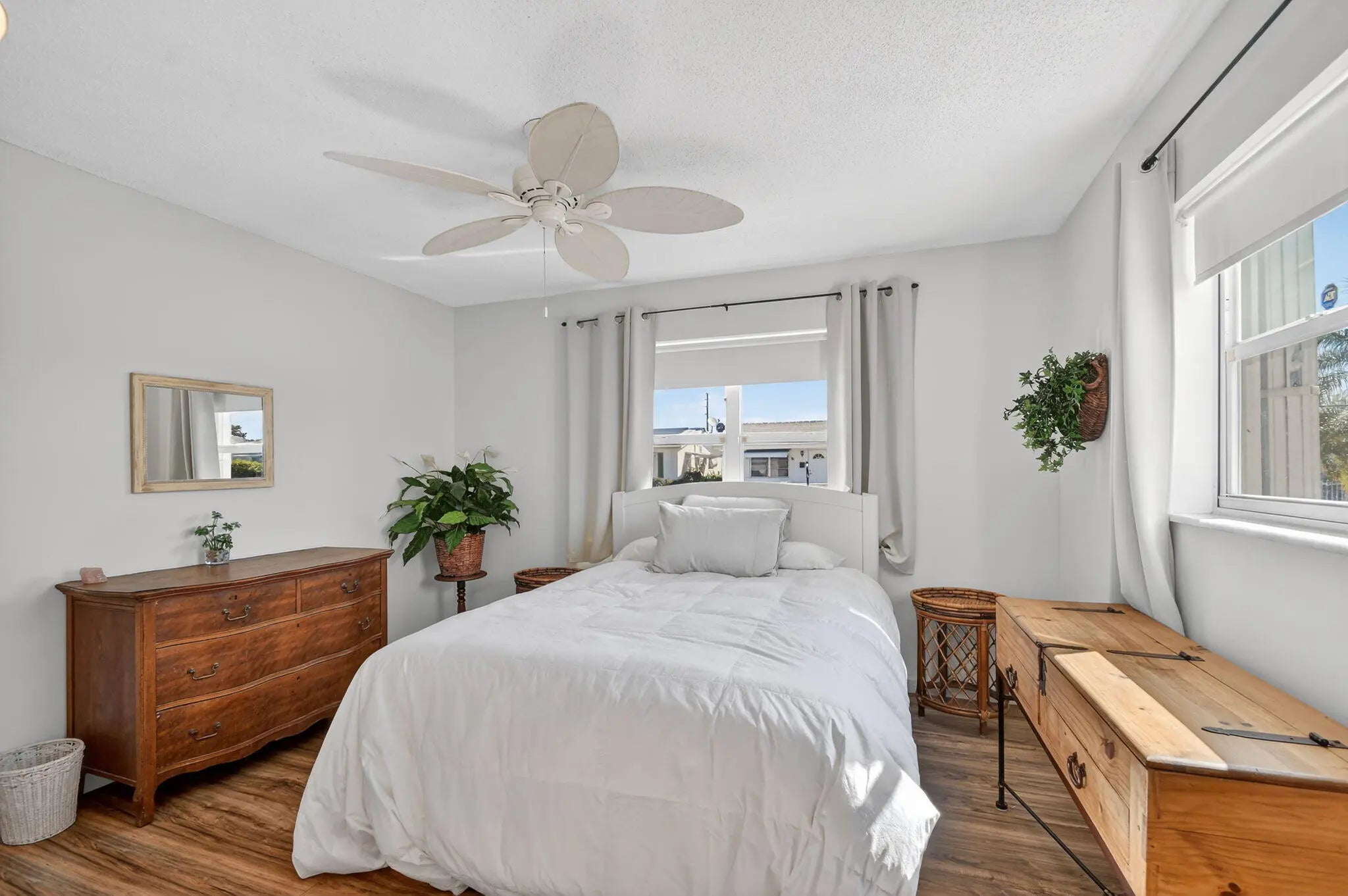Pristine, turnkey (furniture optional) single-level CBS home ready for immediate move-in! This popular Regis model features 2 bedrooms and 2 updated bathrooms with a bonus glass enclosed Florida room on an oversized corner lot, ideally located close to one of the community clubhouses. Recent updates include a newly resealed two-car driveway (2025) and Class 5 accordion hurricane shutters for added peace of mind. Enjoy one of the lowest HOA fees in the area at just $187/month, covering lawn maintenance, exterior painting every six years, and power washing every two years. Community amenities include three clubhouses, three swimming pools, and a FREE 18-hole golf course, all conveniently located near shopping, dining, and major roadways.