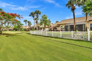 Rare opportunity to own a piece of Aberdeen Country Club with direct golf and water views!! Enjoy your morning coffee or a glass of wine with stunning sunsets with front row seats to tee box #5 from your screened in lanais. Stroll out to your expansive paver-stone patio within a 45'x30' fenced & professionally landscaped backyard with direct golf and water views! Primary Bedroom Suite with 2 closets including walk-in, double vanity, soaking tub, adjoining water closet, walk-in shower w/ new shower door and additional sink/cabinet. Guest Bedroom, 2nd full Bathroom, Bar Counter/Cabinets, and converted Office/Sitting Room. New roof- 2022, New A/C-2023- Air Purification system added - 2025, New luxury vinyl flooring-2024, New insulated impact garage door-2024, New garage slop sink-2024.