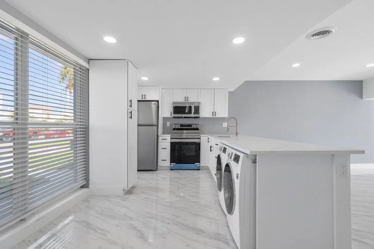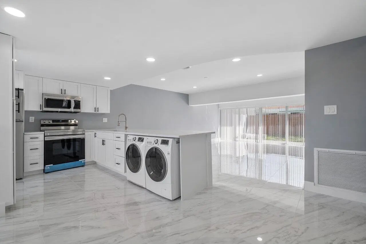 Fully renovated duplex located east of Federal Highway in Pompano Beach. This rare side-by-side property features two spacious 2BR/1BA units, each offering 1,000+ SF, private entrances, and individually fenced backyards. Both units have been updated top to bottom with modern open kitchens, quartz countertops, stainless steel appliances, tile flooring, updated bathrooms, fresh landscaping, and white PVC privacy fencing. Each unit includes a full-size washer and dryer and is separately metered. Ample driveway parking, storm protection with a mix of impact windows and shutters, and recent major improvements including a new driveway and roof. No HOA. Prime location minutes to the beach, A1A, Pompano Pier, parks, dining, shopping, and major highways. Ideal turnkey investment or to house-hack!