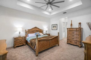 model offers newer construction in a sought after 55+ community, built in 2018 and designed for easy Florida living. The home features 2 bedrooms plus a den, perfect for a home office, reading room, or guest space. UPGRADED large format porcelain tile runs throughout the living areas, with carpeting in the bedrooms and a porcelain flooring tile upgrade in the primary suite. The primary bath includes updated tile extended to the ceiling, and additional lighting is installed throughout the home. HURRICANE IMPACT GLASS provides security and peace of mind. The oversized screened lanai overlooks a wide lake and fountain you can hear from the patio. Enjoy quiet mornings and relaxing evenings with water views, plus a clubhouse with pools, fitness center, pickleball, tennis, and social activities