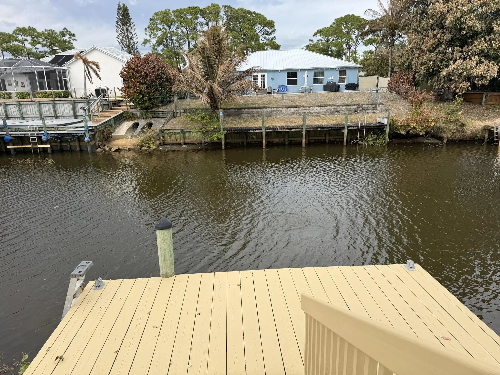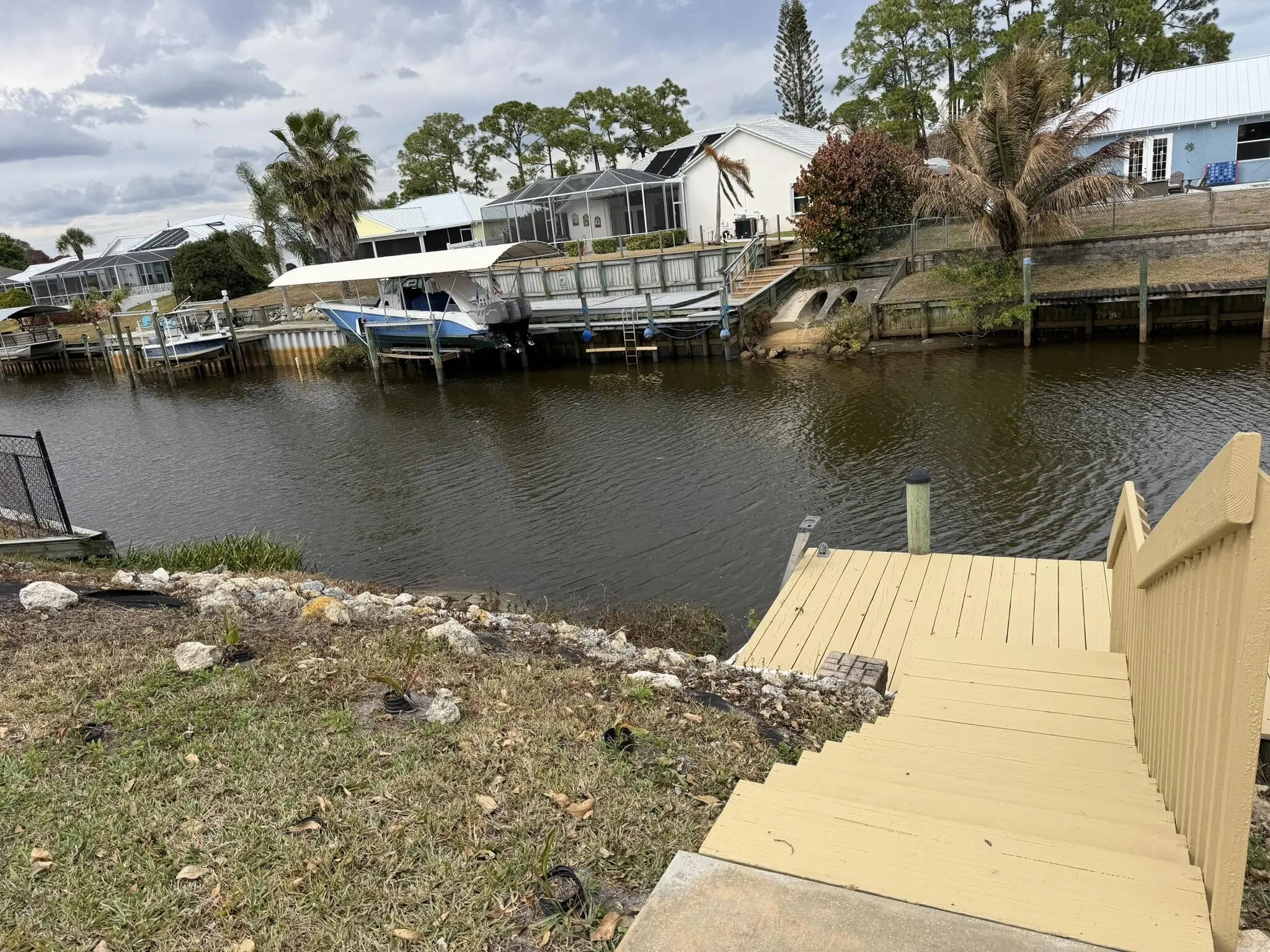 Gorgeous 3/2/2 Ocean Access Waterfront Pool Home. Tile in main living areas. Split Floor Plan. Large Kitchen with pantry and wrap around bar. Stainless Steel Appliances. Walk in Closet in Primary Bedroom, Primary Bath has 2 Vanities areas.Beautiful Canal Views with a Dock. Screened Patio for Sun Bathing by the Pool. Impact windows & sliding Doors. Come and see this lovely home!!