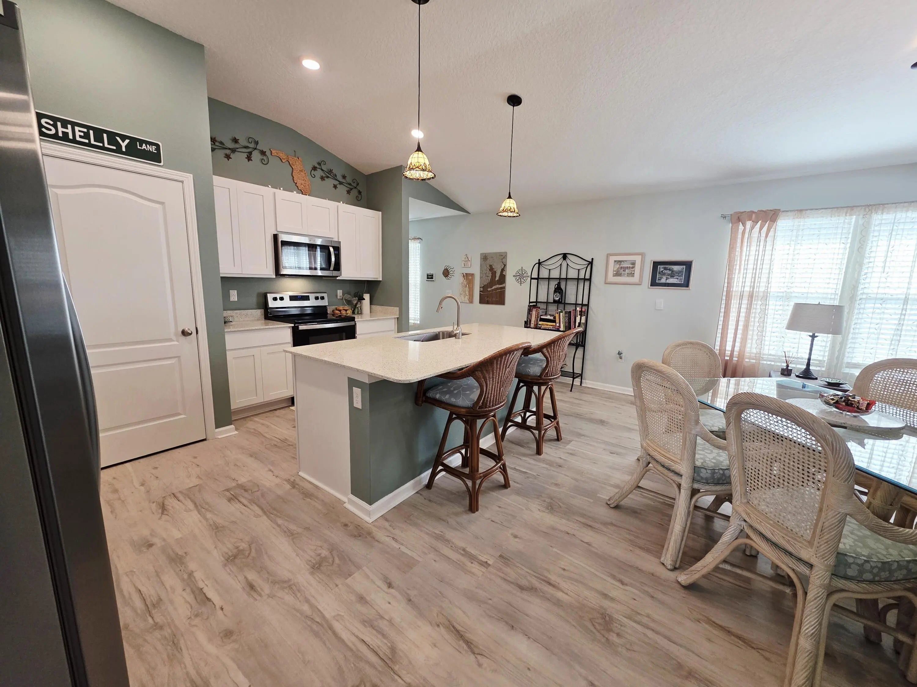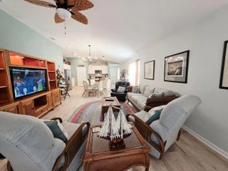 Welcome home to this tastefully upgraded St. George model home in Ravenswood Villages. This new community is located only minutes from historic downtown St. Augustine and area beaches. This 4 bed 2 bath smart home, completed in 2024, has an open floor plan that's great for entertaining friends and family. The back yard is set up for entertaining also with white privacy fencing, a stone paver patio, bbq grill and fire pit. The owner has made many upgrades with quality materials to make this not only an easy home to maintain, but a beautiful home as well. All kitchen and bath countertops are curava sea glass, all flooring is LVP, the interior has been completely repainted, glass shower doors and lighted vanity mirrors installed in both bathrooms, and the 2 car garage floor has been coated