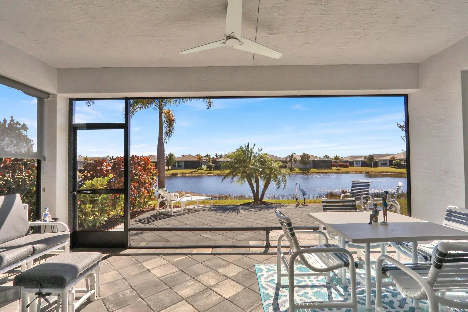 Experience the pinnacle of active 55+ living at Valencia Grove at Riverland! The popular Sierra model offers 3BD/2BA and 2,064 sq. ft. of Florida lifestyle living space. Enjoy south-facing, wide-lake views from this beautiful home on an oversized lot. The screened lanai boasts upgraded pavers, privacy landscaping, and shade; extended patio pavers enhance the view. This contemporary, move-in-ready home features European-style, frameless soft-close kitchen cabinets, a large kitchen Island perfect for entertaining, and a custom pantry. Enjoy neutral, calming paint colors, modern ceiling fans and lighting, Hunter Douglas Silhouettes & Plantation Shutters, and a custom-designed primary closet. Built with impact glass, upgraded appliances, contemporary offset tile throughout, and no carpet!