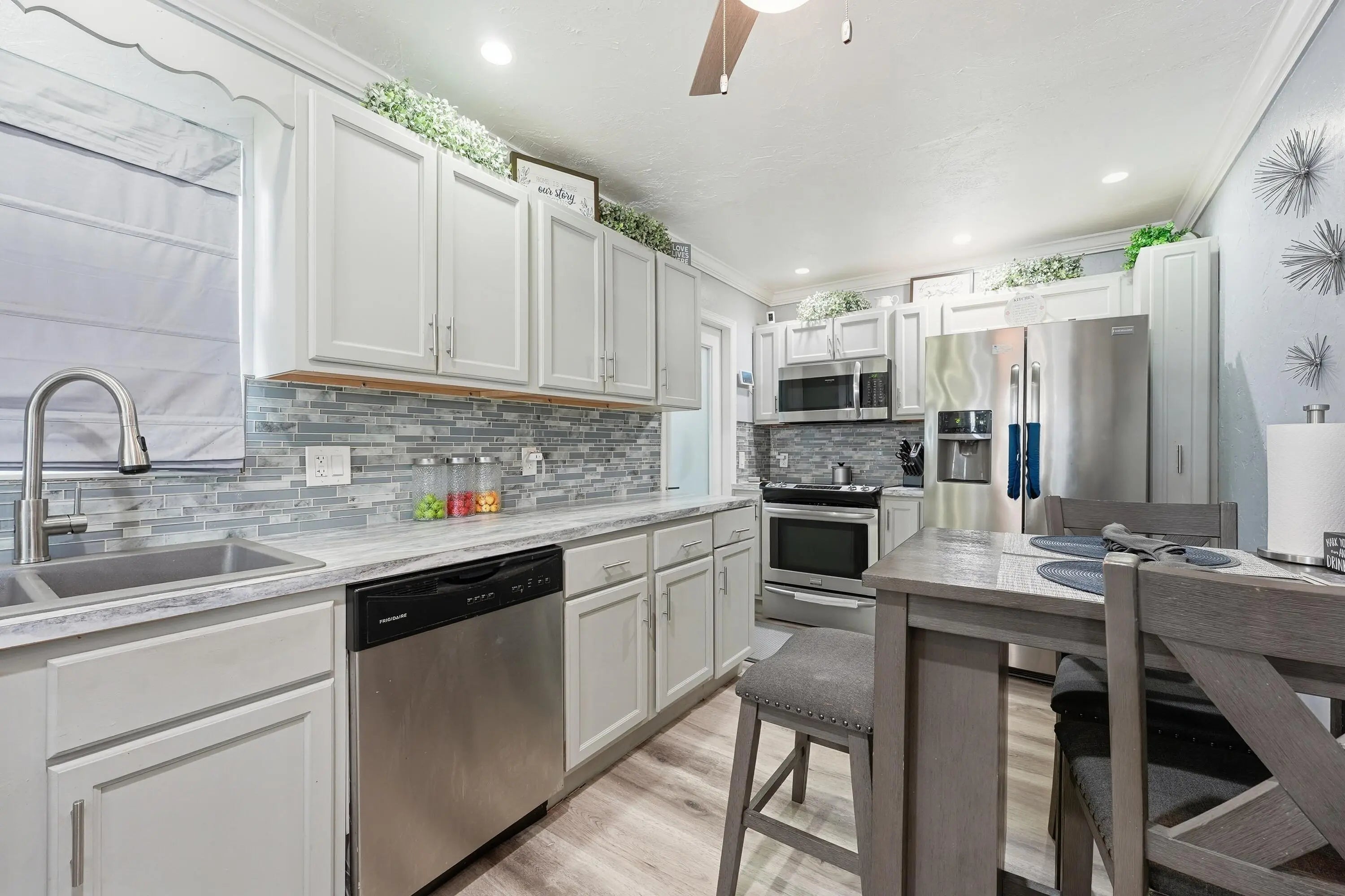 Beautifully renovated 4-bedroom, 3-bath single-family home in West Palm Beach with no HOA! This spacious layout features modern vinyl flooring throughout, a newly updated kitchen with stainless steel appliances, and contemporary finishes. Enjoy a formal living area, family/TV room, dedicated office space, and a luxurious primary suite. A new roof and installed security offer added peace of mind. Step outside to a covered patio overlooking a fully fenced, oversized backyard--perfect for entertaining or adding a future pool. Includes separate storage unit.