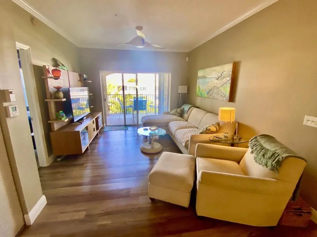 Secure your perfect off-season escape with this beautifully appointed turnkey rental in the heart of the Sunshine State! This inviting 2-bedroom home features a vibrant, colorful coastal interior that creates a warm and cheerful atmosphere throughout. Fully stocked and move-in ready, all you need to bring is your bathing suit before heading to the beach just a half mile away.The primary bedroom offers a comfortable queen bed, while the second bedroom features two lounge chairs that easily convert into beds, providing flexible sleeping space.Enjoy peaceful mornings with coffee on your private balcony overlooking stunning intracoastal views, and spend afternoons poolside grilling while watching boats and yachts pass by. High-speed internet is included..