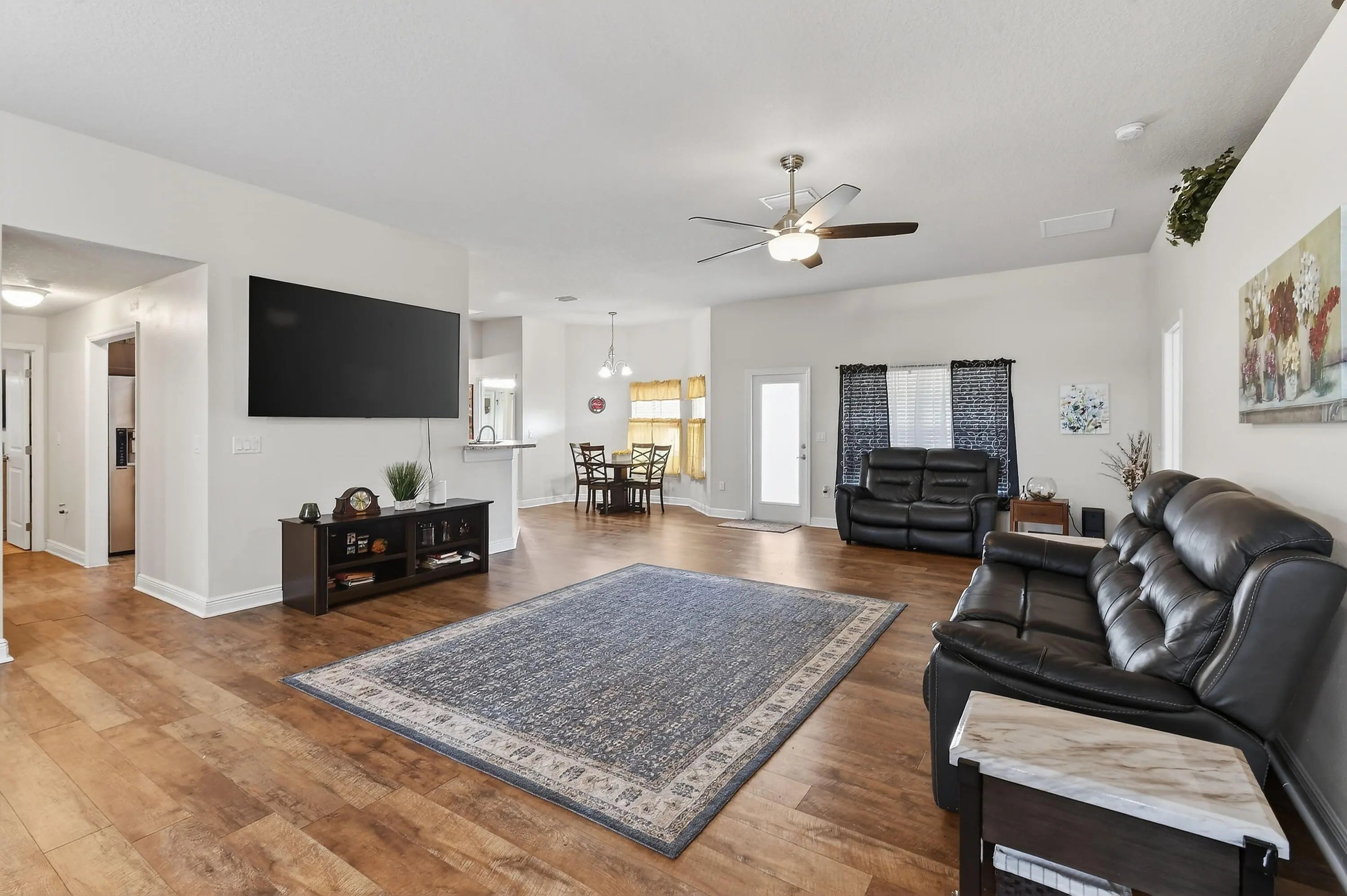 Spacious 4‑bedroom, 3‑bath CBS home with a 3‑car garage in Port St. Lucie. This must‑see property offers a generous layout featuring a formal living room, dining room, and a convenient cabana bath that opens to the lanai -- perfect for indoor‑outdoor living. The home includes upgraded finishes throughout stainless-steel appliances, upgraded cabinetry with crown molding, dual pane Low vinyl windows, 51/4'' baseboards, lever style door handles, and rocker style light switches. The main living areas and two bedrooms feature wood laminate flooring, while the primary suite and an additional bedroom offer cozy carpeting.
