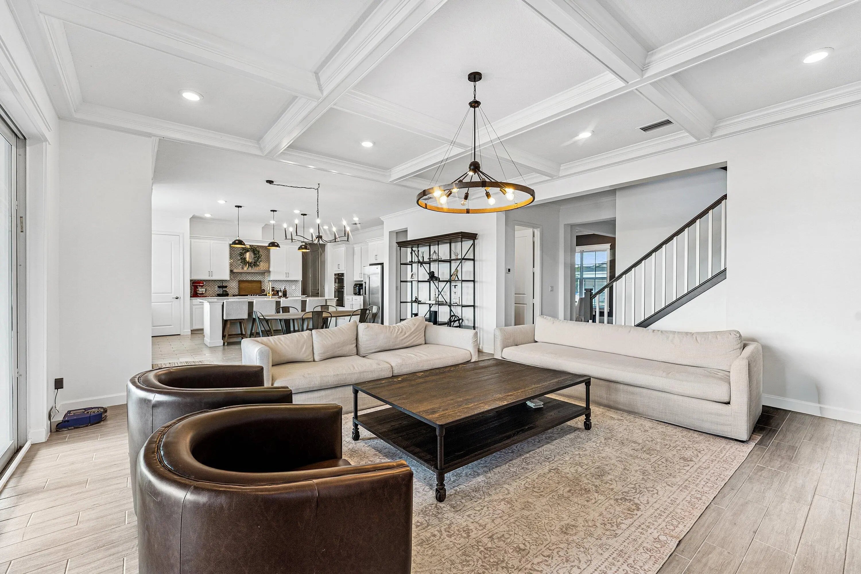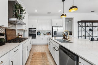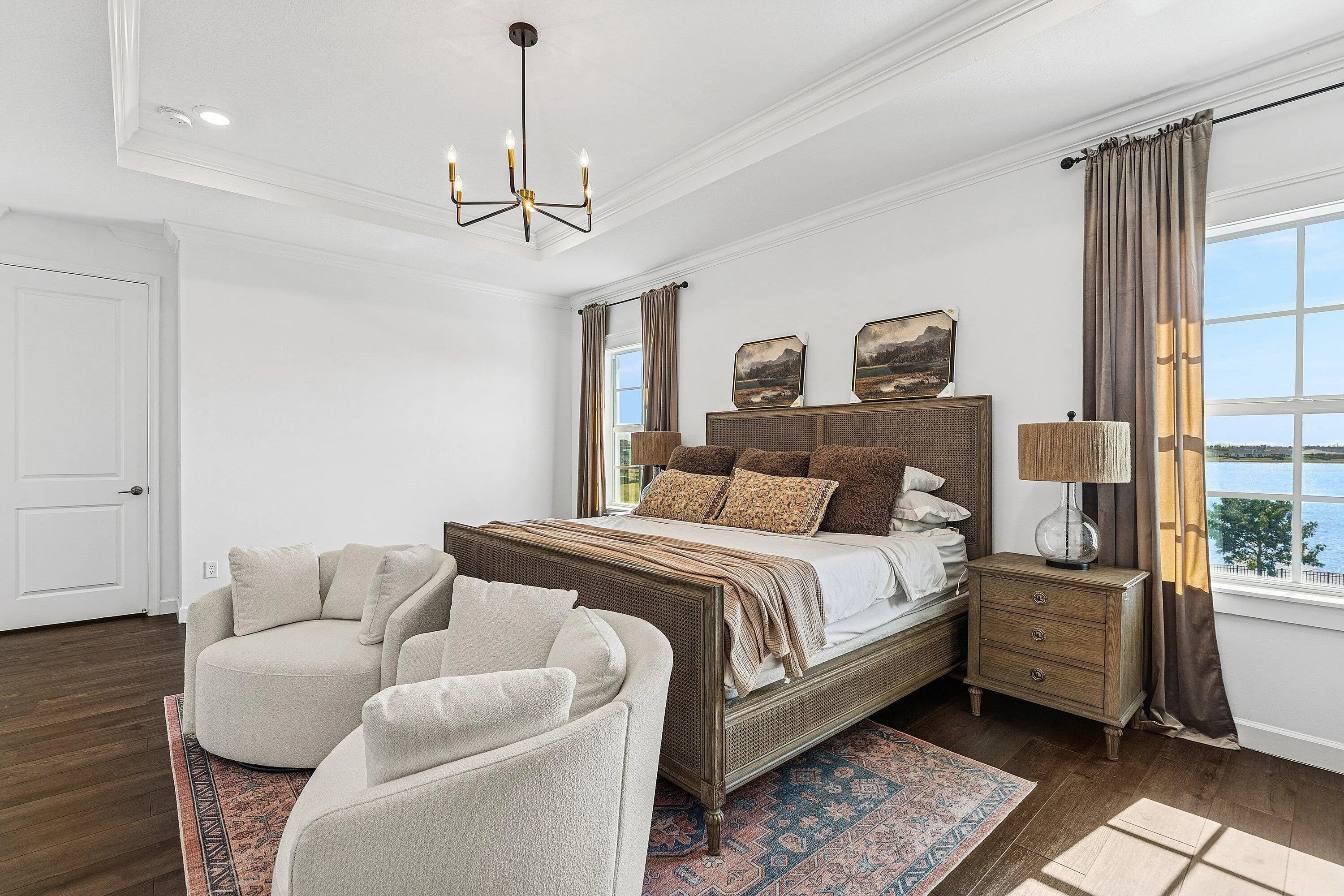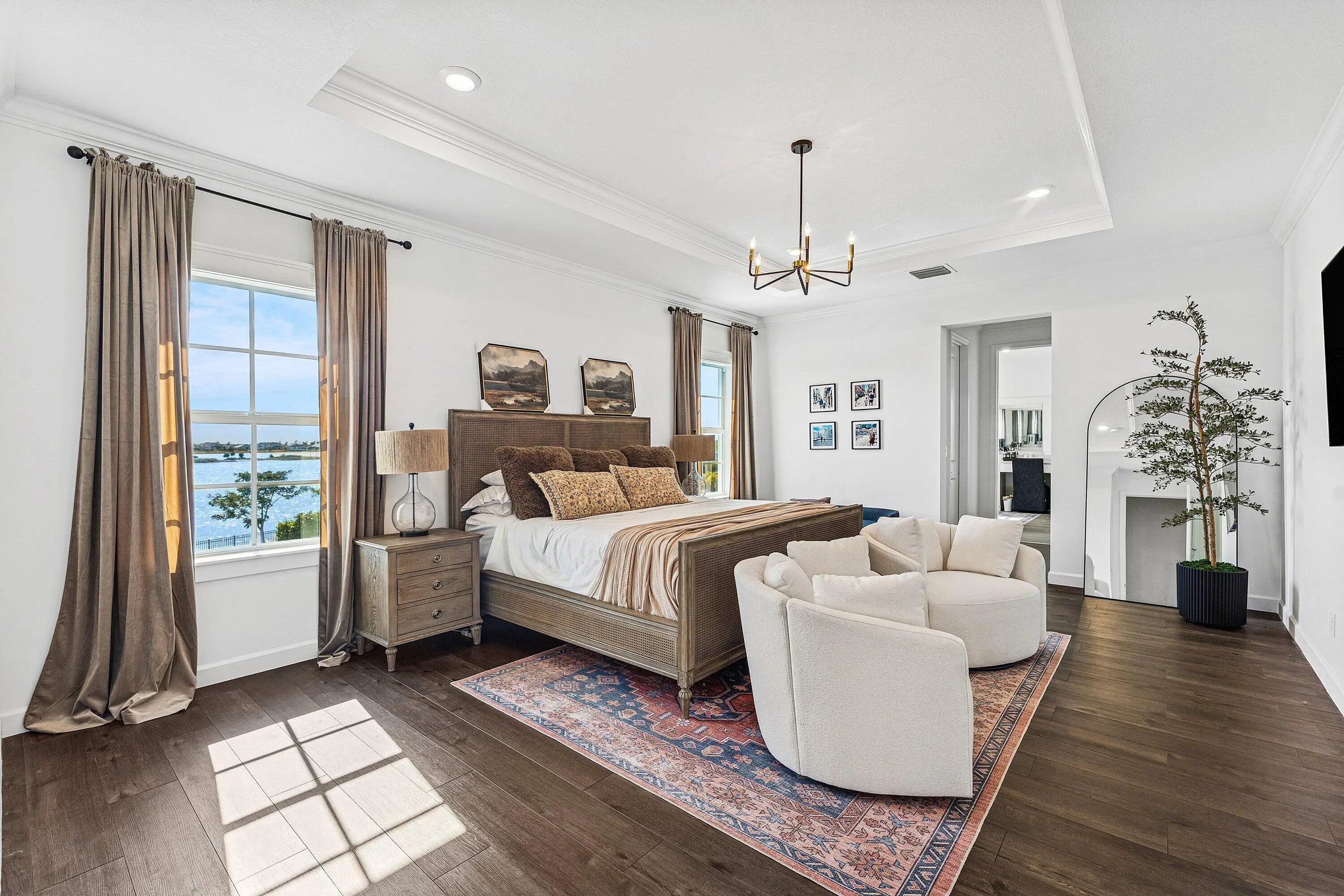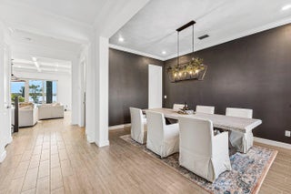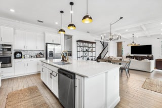 Discover refined waterfront living in this exceptional residence, where modern elegance, comfort, and stunning views come together seamlessly. This beautifully appointed home offers 5 spacious bedrooms and 4.5 bathrooms, thoughtfully designed for both everyday living and elevated entertaining. At the heart of the home, the chef's kitchen showcases top-of-the-line appliances, custom cabinetry, and a generous island perfect for gatherings. Architectural details such as coffered ceilings, detailed window trim, and upgraded flooring throughout add warmth and refined character to the open, light-filled living spaces.