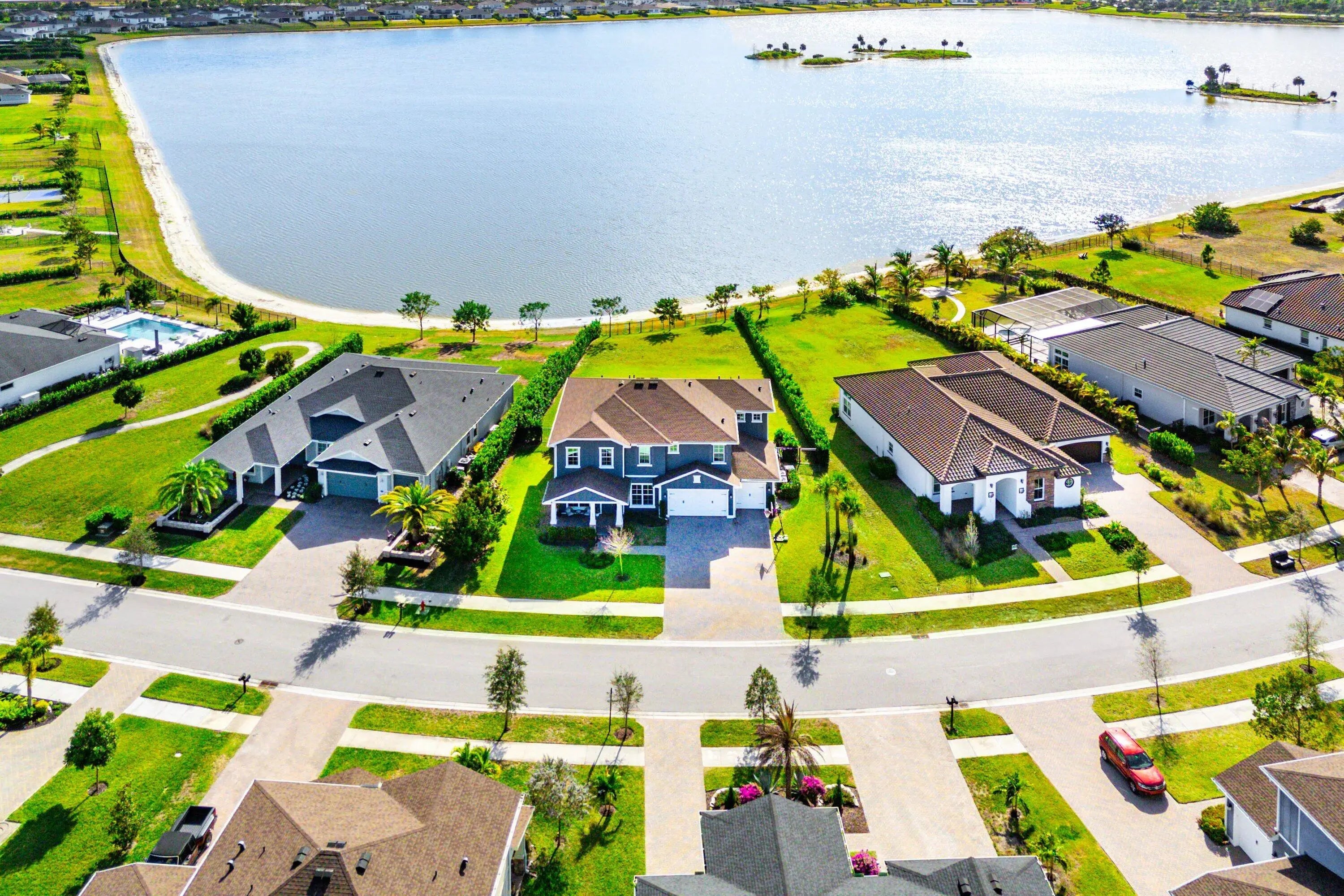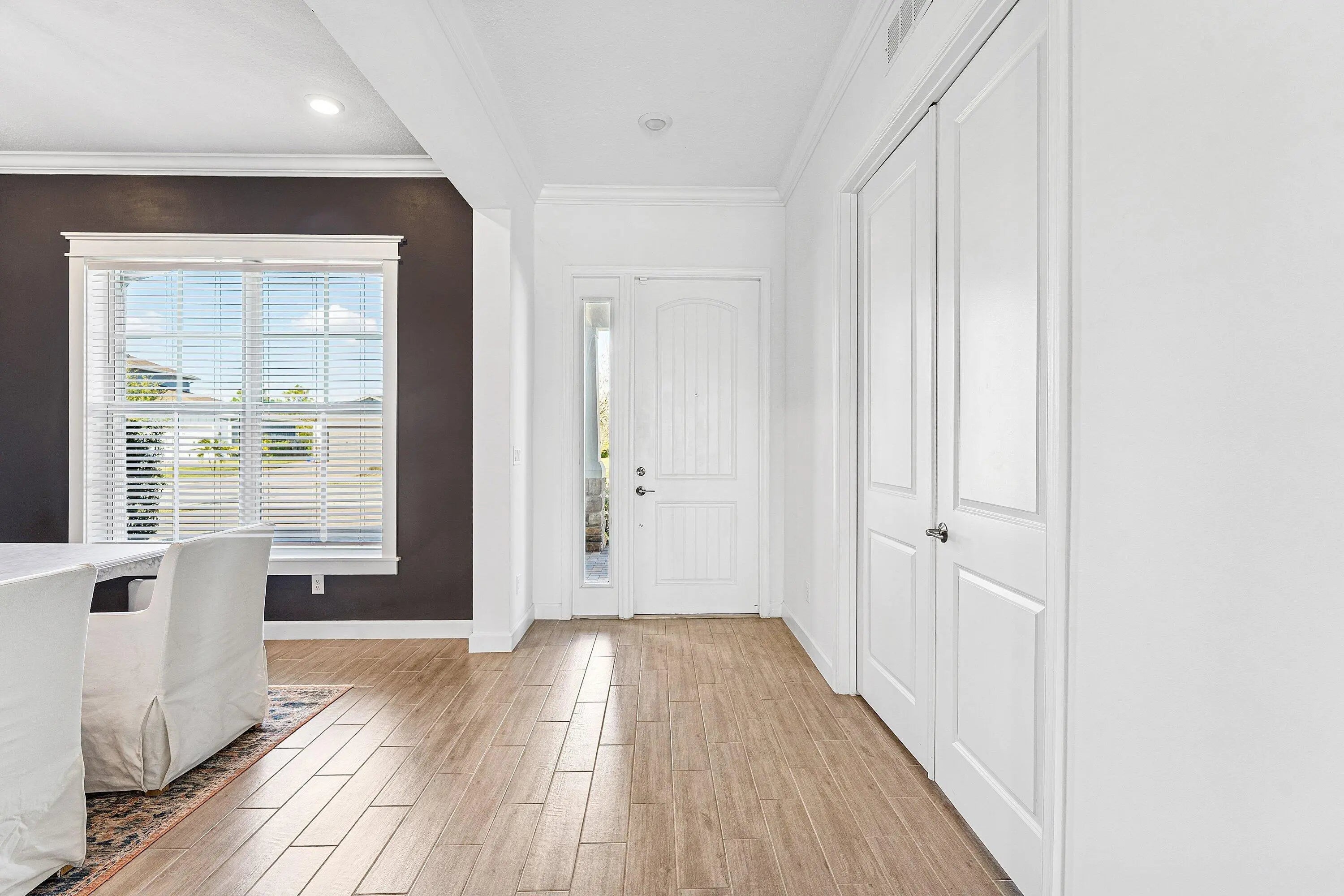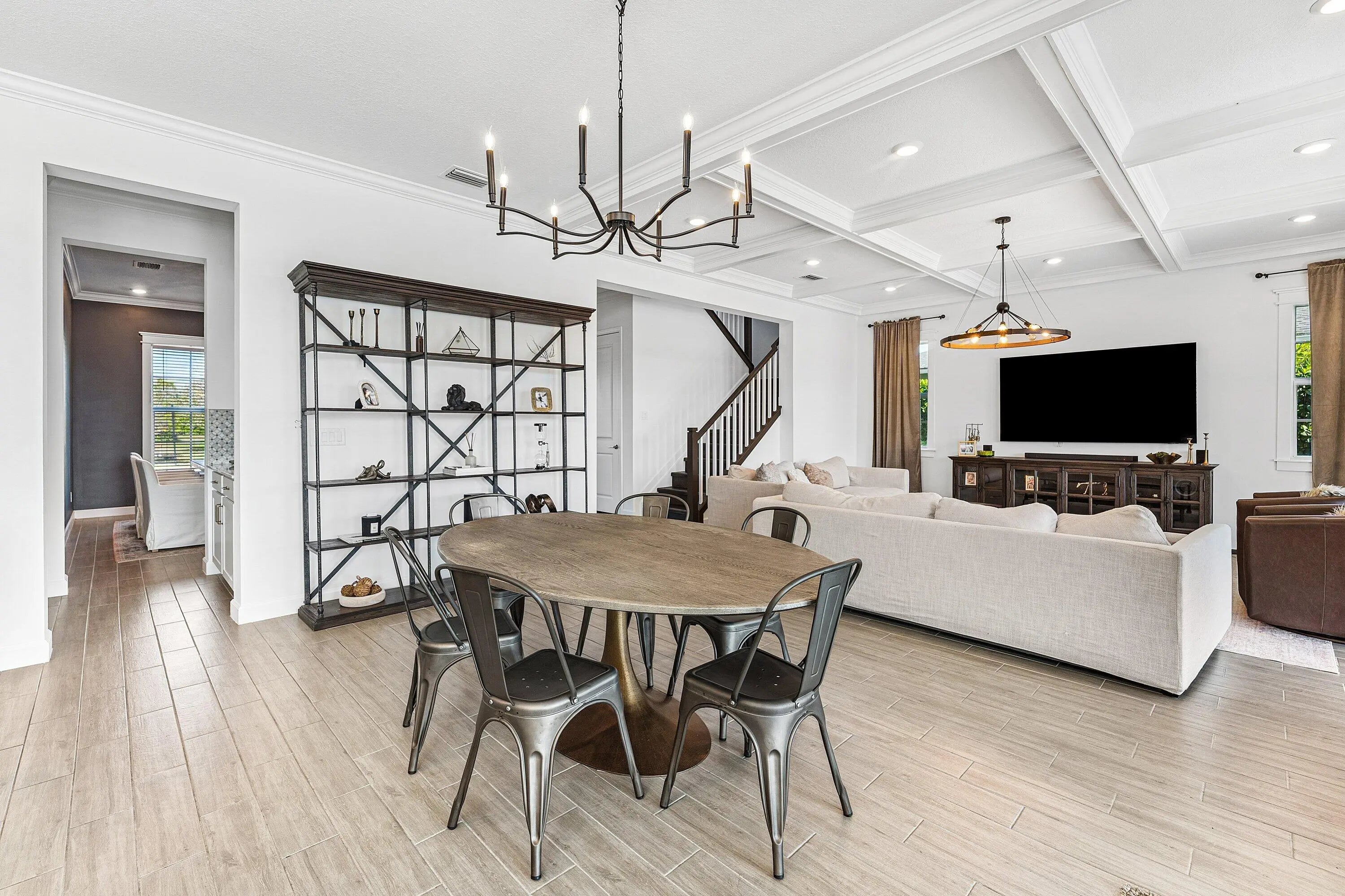 Discover refined waterfront living in this exceptional residence, where modern elegance, comfort, and stunning views come together seamlessly. This beautifully appointed home offers 5 spacious bedrooms and 4.5 bathrooms, thoughtfully designed for both everyday living and elevated entertaining. At the heart of the home, the chef's kitchen showcases top-of-the-line appliances, custom cabinetry, and a generous island perfect for gatherings. Architectural details such as coffered ceilings, detailed window trim, and upgraded flooring throughout add warmth and refined character to the open, light-filled living spaces.