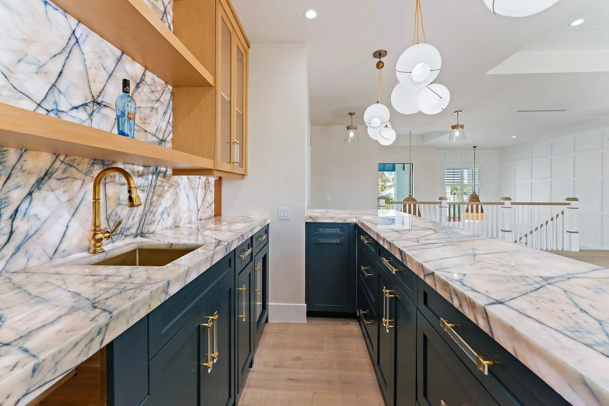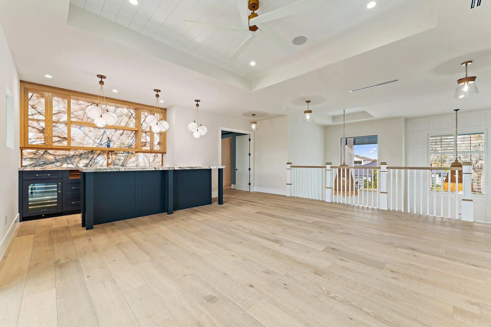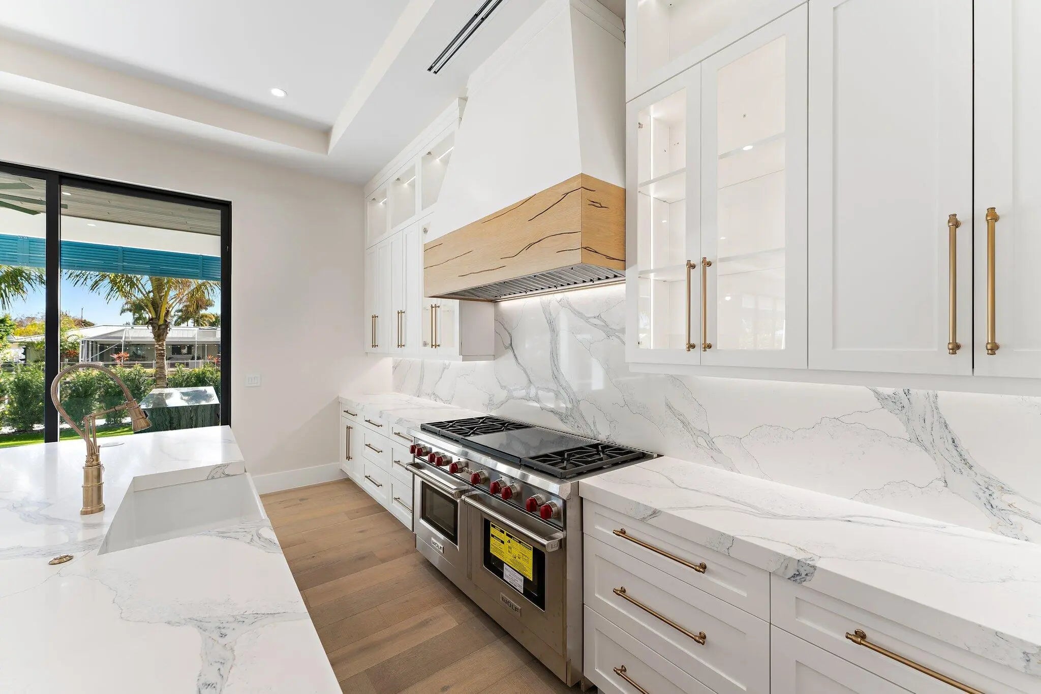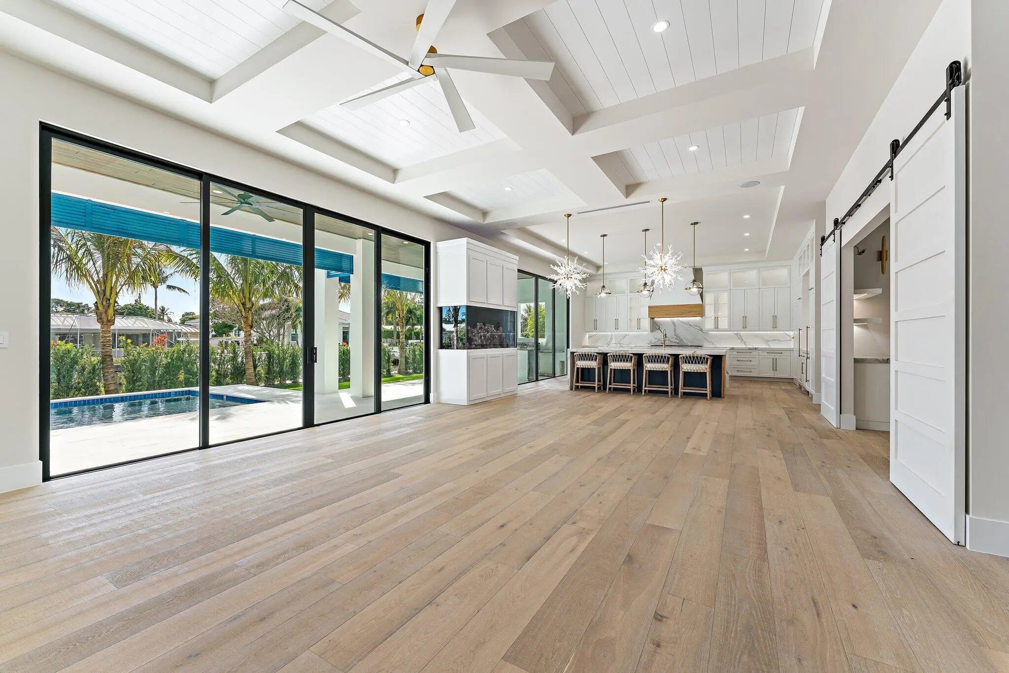 Newly completed in February of 2026, this waterfront estate home has it all. The main floor boasts a custom built-in aquarium in the great room; chef's kitchen with Sub-Zero and Wolf appliances and two islands, plus prep. Kitchen; home theatre room; three car garage (one bay is turned into a fitness center); powder room; and first floor guest suite. Wide plank oak floors throughout the main core of the home provide warmth and charm. The 2nd floor features an elevator; primary suite with two closets and huge primary bath; loft area with bar; two guest suites; and a large, covered balcony. The outdoor spaces feature custom pool with spa and water features; summer kitchen with BBQ; artificial turf back yard, and new dock with boat lift.