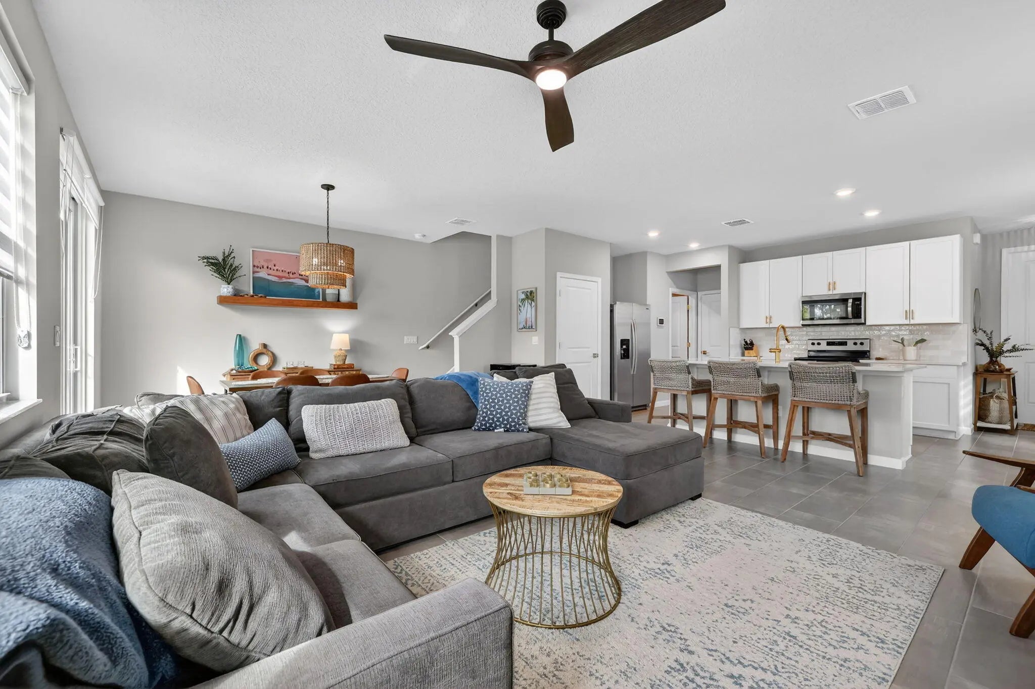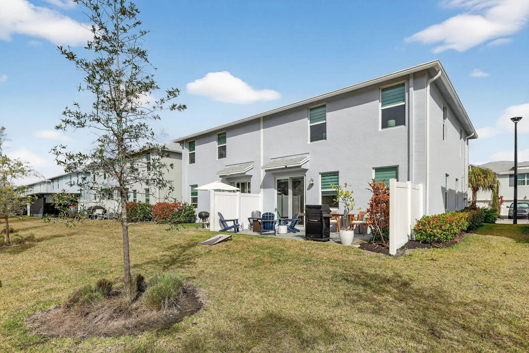 Fully furnished and backing directly to the preserve for peaceful views and added privacy, this beautifully upgraded 3BR/2.5BA townhome (built 2022) is move-in ready in gated Osprey Preserve. Bright open-concept living with stainless steel kitchen, spacious dining and living areas, and an extended paver patio with added vinyl privacy fence--perfect for relaxing or entertaining. Upstairs features three generous bedrooms including a serene primary suite with walk-in closet and spa-style bath. Universal electric vehicle charger included. Community pool, sidewalks, lawn care included. Minutes to beaches, dining, and vibrant downtown Jensen Beach.