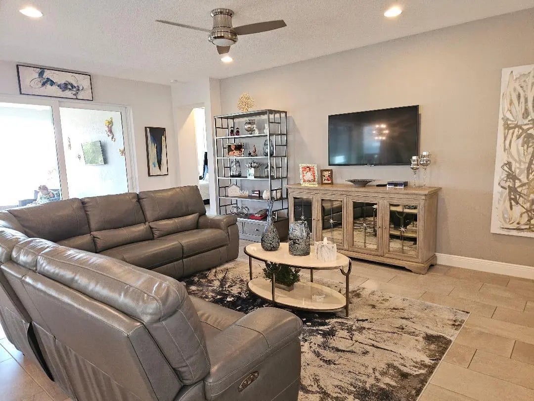 This is truly a MUST-SEE LAKEFRONT luxury home which shows like a model its a home you would see in the finest home magazines! The spacious floor plan has it all including a beautiful kitchen with white cabinetry, a 102' x 54 inch center island (with beautiful wood trim below) and stylish granite adoring the entire kitchen. Upgraded stainless steel (S/S) appliances include a double oven, microwave, cook-top gas range and an upgraded double door refrigerator. Everything is easy with soft close cabinetry doors and multiple ''pull outs''. The dining area is spacious and sports multiple windows including an additional window not shown on the plan for a light and bright interior overlooking the patio and garden and lake views! The Great Room is also grand with an open feel...(conti