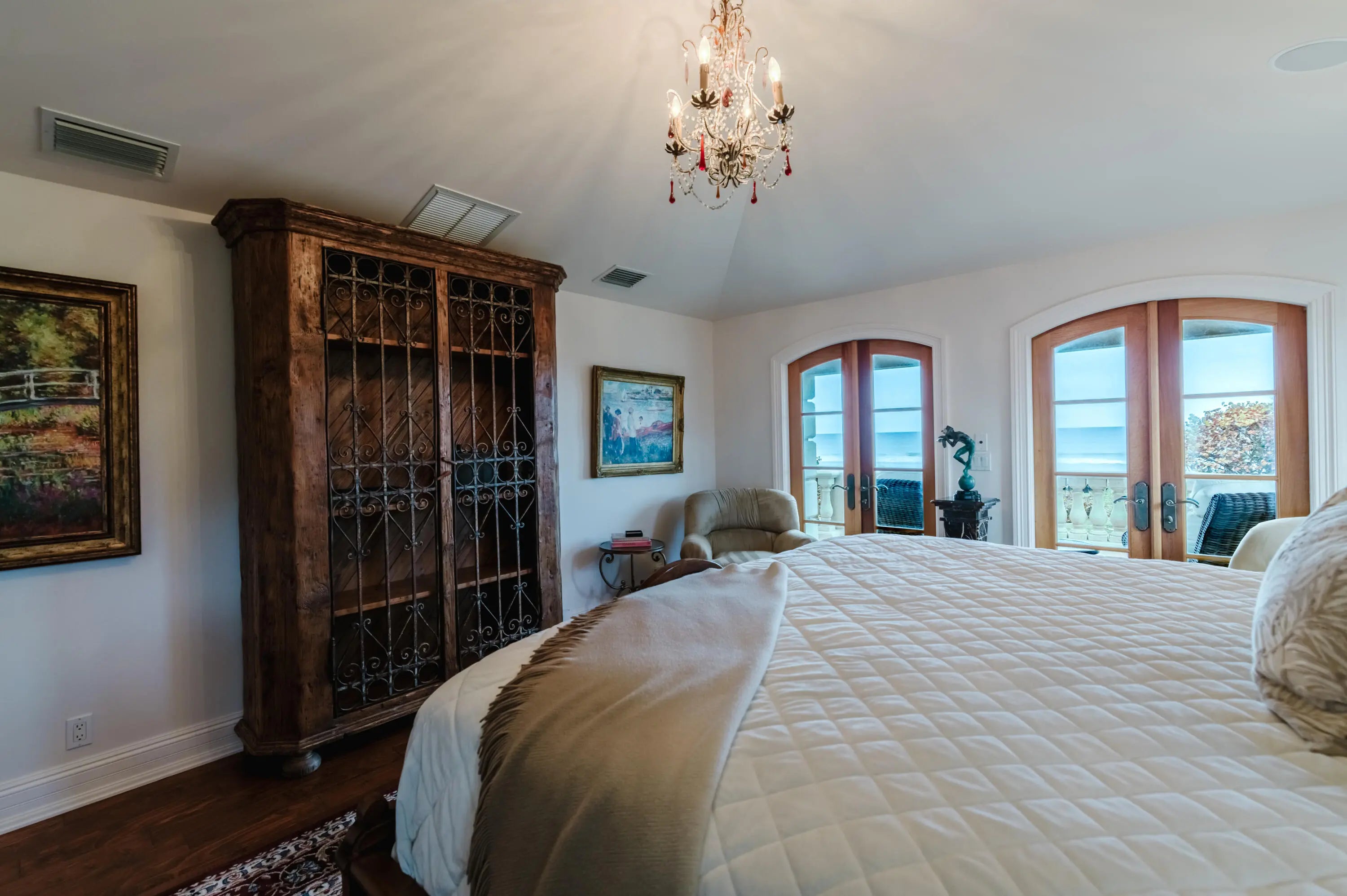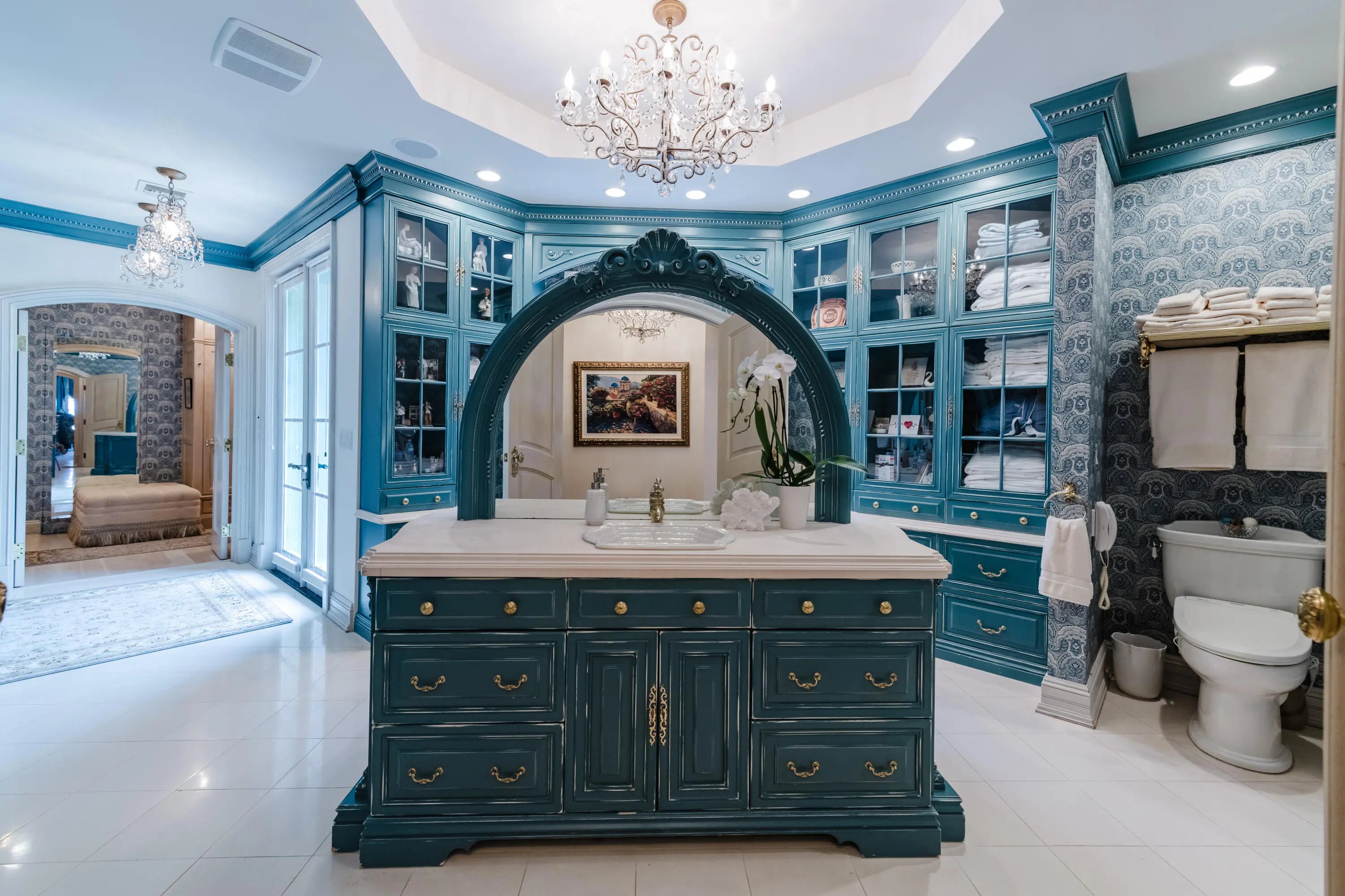 Bar, Built-in Shelves, Closet Cabinets, Elevator, Entry Lvl Lvng Area, Fireplace(s), Foyer, French Door, Kitchen Island, Laundry Tub, Roman Tub, Split Bedroom, Volume Ceiling, Walk-in Closet, Wet Bar
