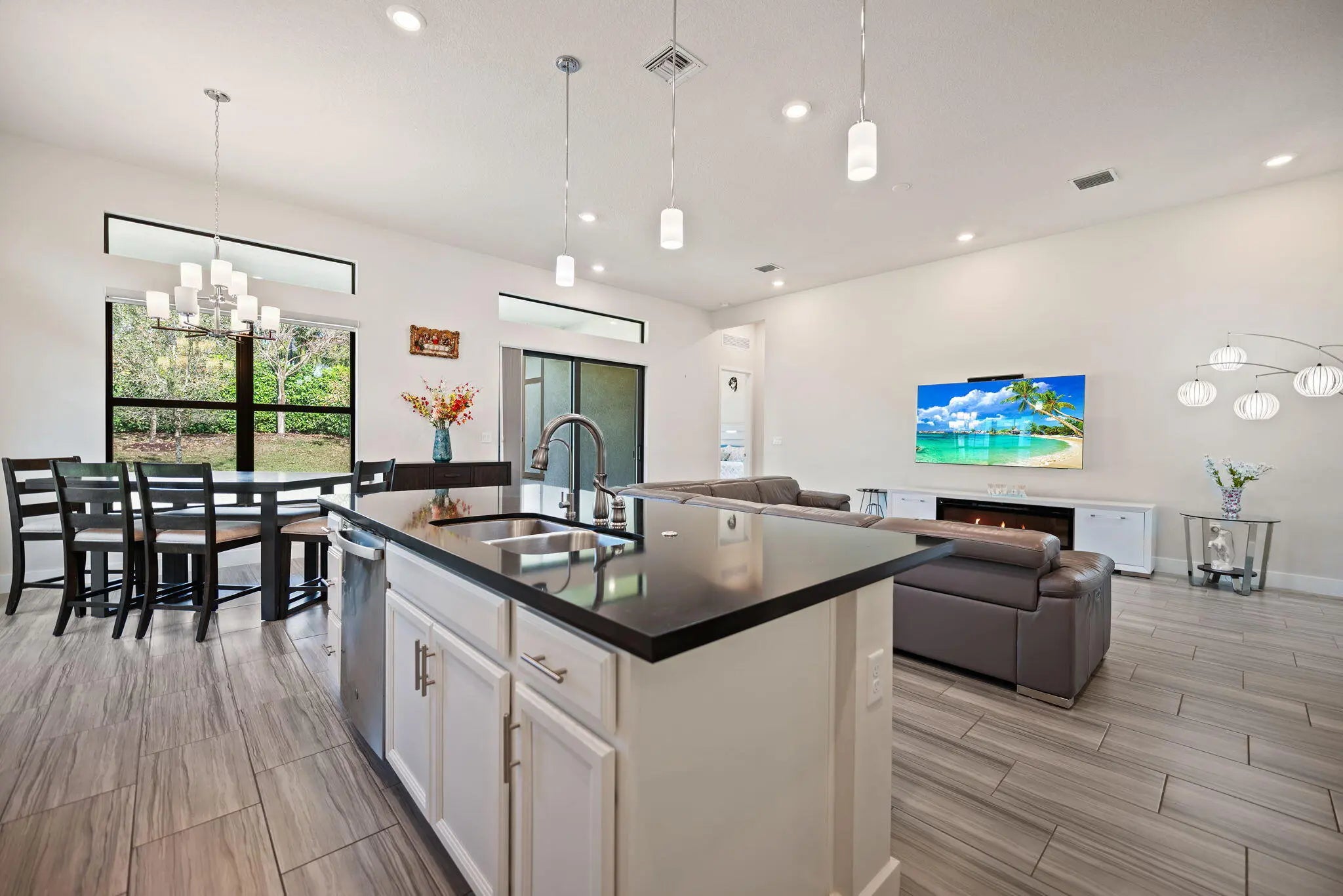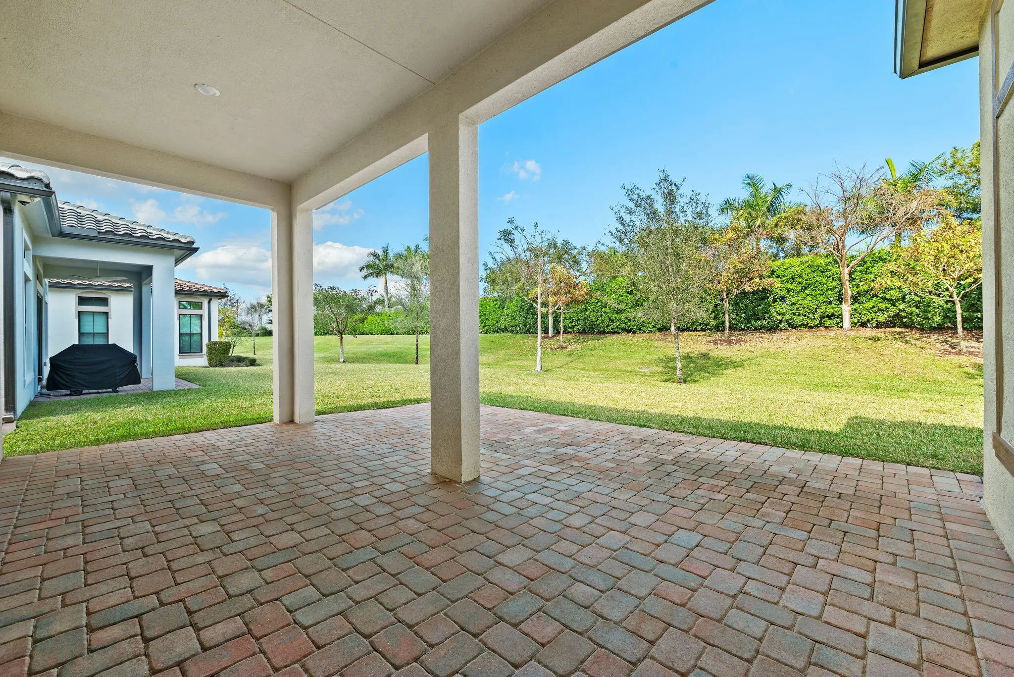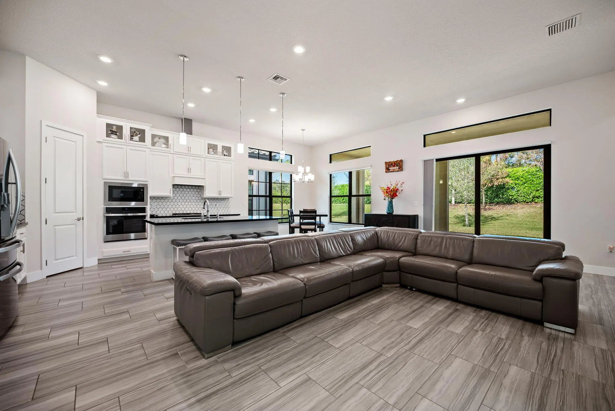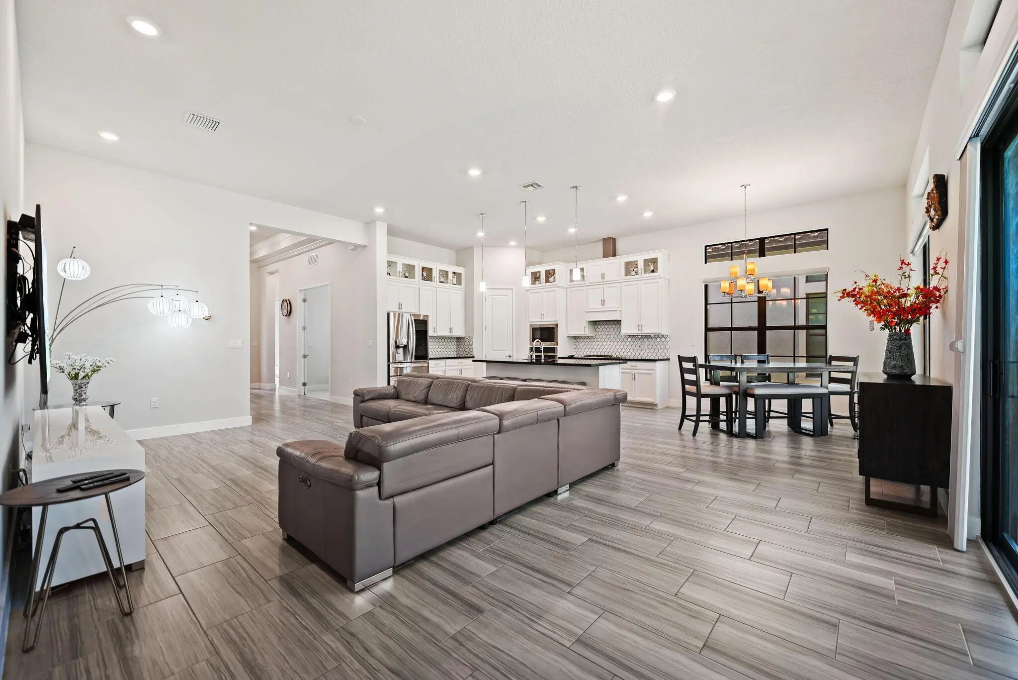 Beautifully upgraded Saint Lucia model in The Falls at Parkland. This one-story home offers 2008 SF of open living space with volume ceilings, upgraded tile flooring, and enhanced recessed lighting throughout. The kitchen features added cabinetry, granite countertops, stainless steel appliances, and upgraded pendant lighting. Primary suite includes tray ceiling, comfort-height vanities, and frameless glass shower. Additional upgrades: impact windows & doors, whole-house water filtration system, alkaline water system, epoxy garage floor, extended patio pavers, and added exterior outlets. Enjoy resort-style amenities including a 24,000 SF clubhouse, fitness center, pickleball, bocce, theater, cafe, and heated pool & spa. HOA includes lawn care, irrigation, cable & internet.
