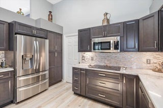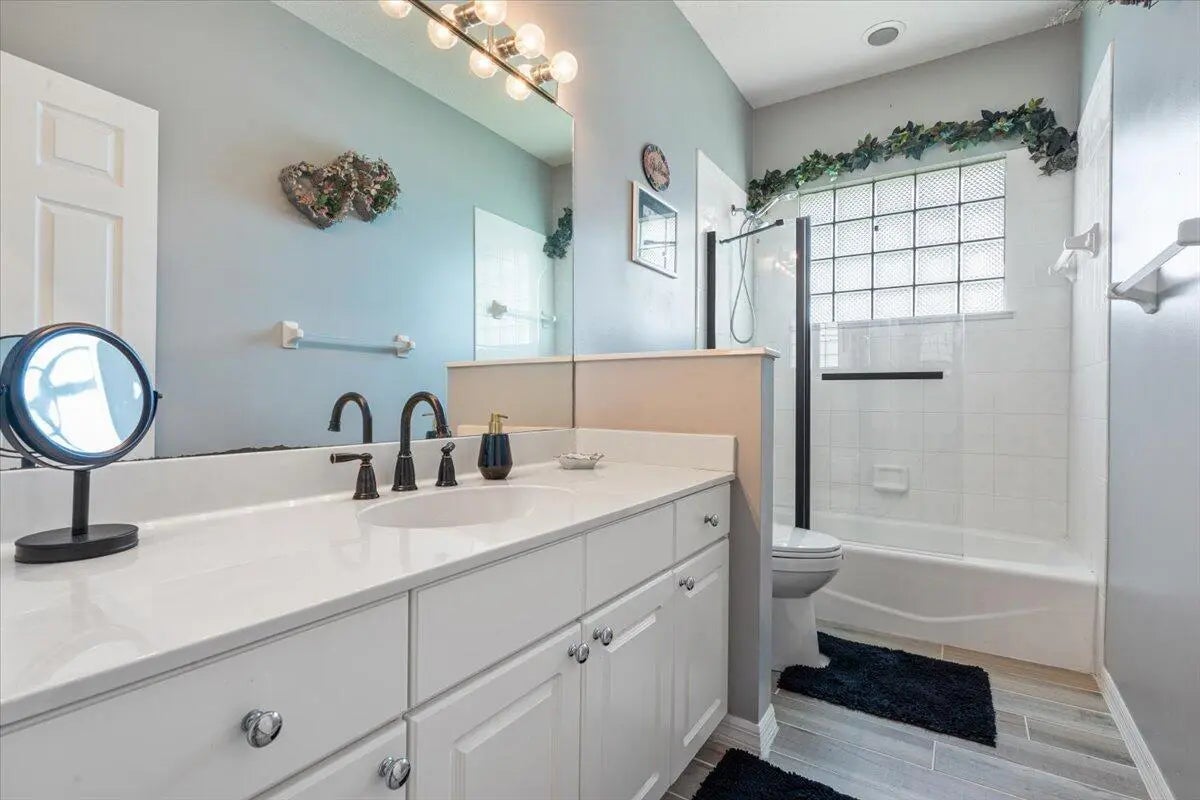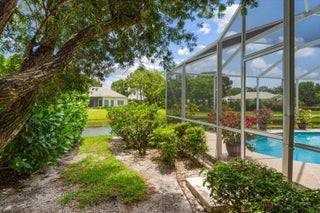 Sought-After Callaway Place in Prestigious PGA Village! You will love this beautifully updated three-bedroom, two-bath pool home perfectly situated on a quiet cul-de-sac with stunning lake views. Featuring a spacious 2.5-car garage with an additional work area This home offers the ideal blend of style and functionality.Highlights include a BRAND NEW ROOF (2025) and a designer kitchen boasting granite countertops, SS appliances, double ovens, cooktop, an abundance of cabinetry, top-of-the-line light fixtures -- all complemented by wood-look tile flooring.Enjoy the Florida lifestyle year-round with your own private pool overlooking the serene lake. The spacious owner's suite features double walk-in closets, newer seamless glass shower doors, and gorgeous views of the pool and lake.