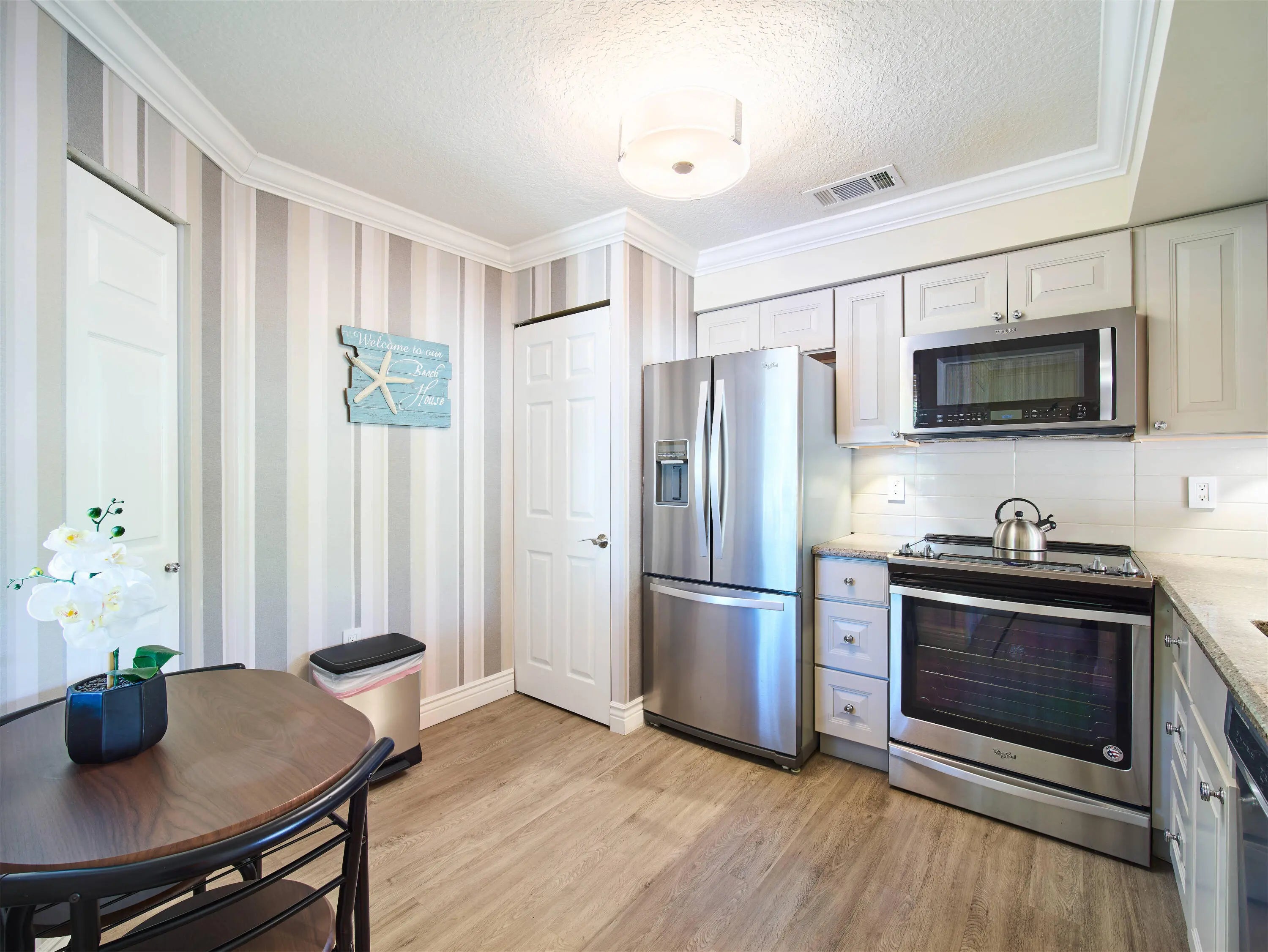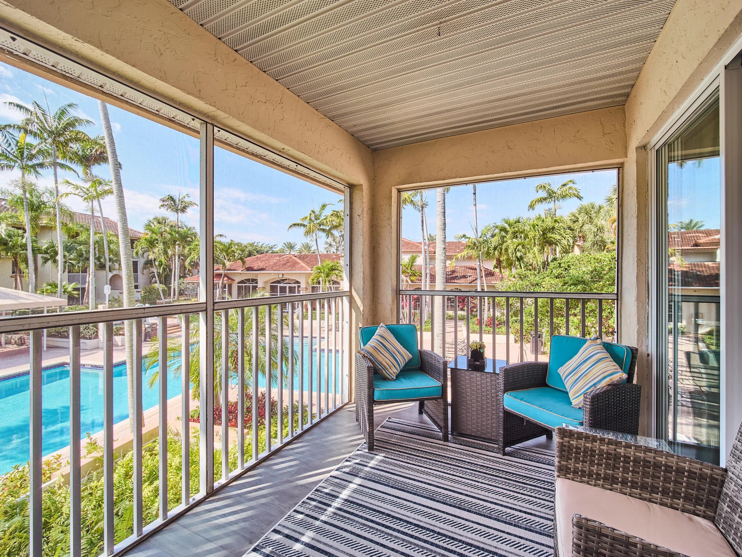 Absolutely stunning fully furnished corner-unit condo in the sought-after Sterling Villages gated community. This turnkey home shows like a model, with high-end furnishings, premium finishes, and an open, bright layout. Enjoy a remodeled gourmet kitchen, stone-accent living room with fireplace and Sonos sound bar, and a finished balcony with serene pool and tropical views. Resort-style amenities include clubhouse, fitness center, tennis courts, and more, just minutes from downtown West Palm Beach, beaches, and shopping.