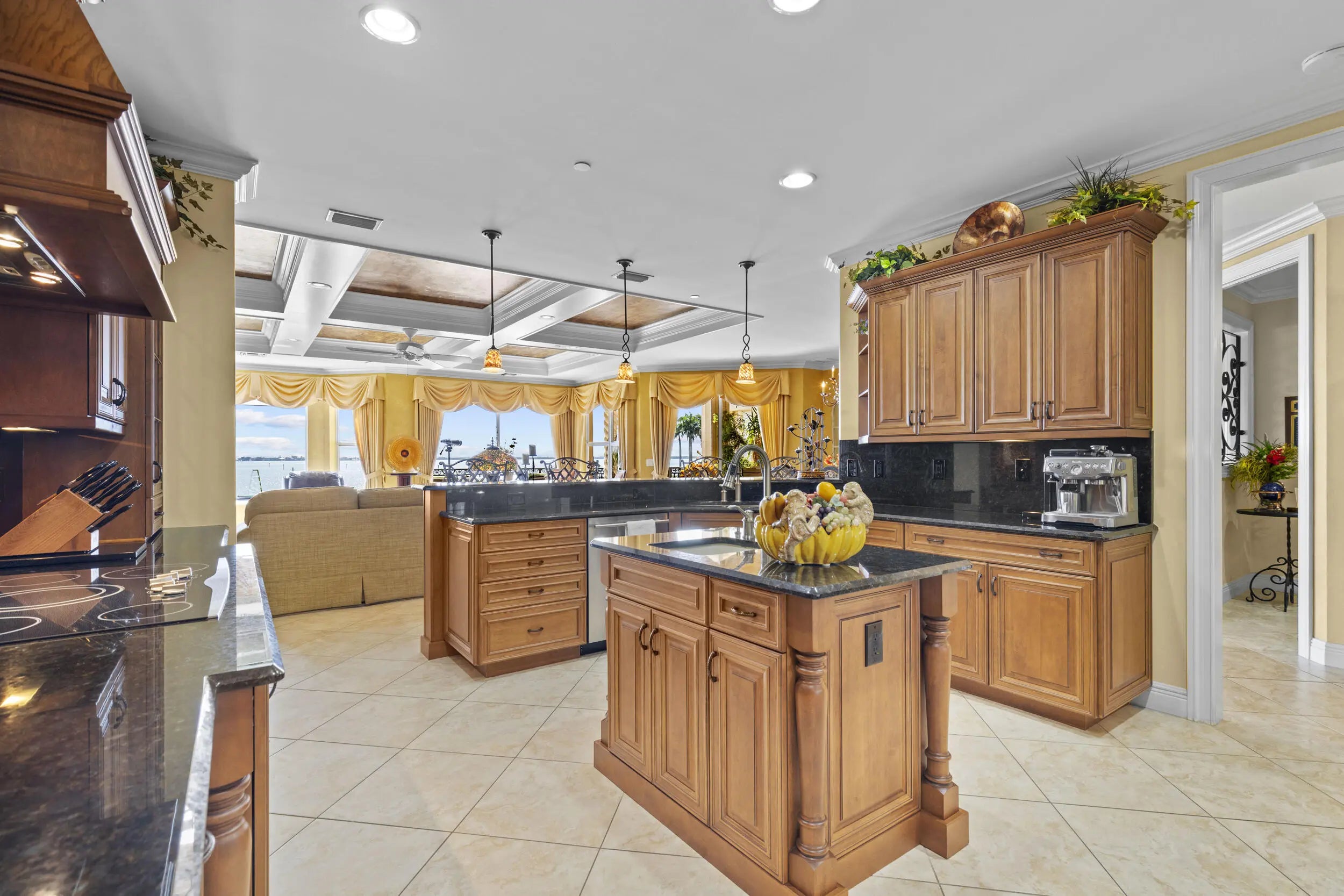 TURNKEY waterfront condo with 3,960 total sqft, 3 Bedrooms (optional 4th), Study/Den and 3.5 Baths. This former model features over $100K in designer upgrades and offers direct Intracoastal views. Enjoy 3 private balconies, impact glass, backup generator, elevator, 2 garage spaces, private storage, crown molding, coffered ceilings, custom murals/art, granite, central vac and dual-zone A/C. The gourmet kitchen boasts JennAir appliances and walk-in pantry. The Master suite includes built-in his & her closets and spa-like bath. Located next to Indian Riverside Park, private marina and walking distance to the famous Dolphin Bar. Minutes to charming downtowns of Jensen Beach and Stuart. Everything has been thoughtfully prepared for you to enjoy the ultimate Florida lifestyle.